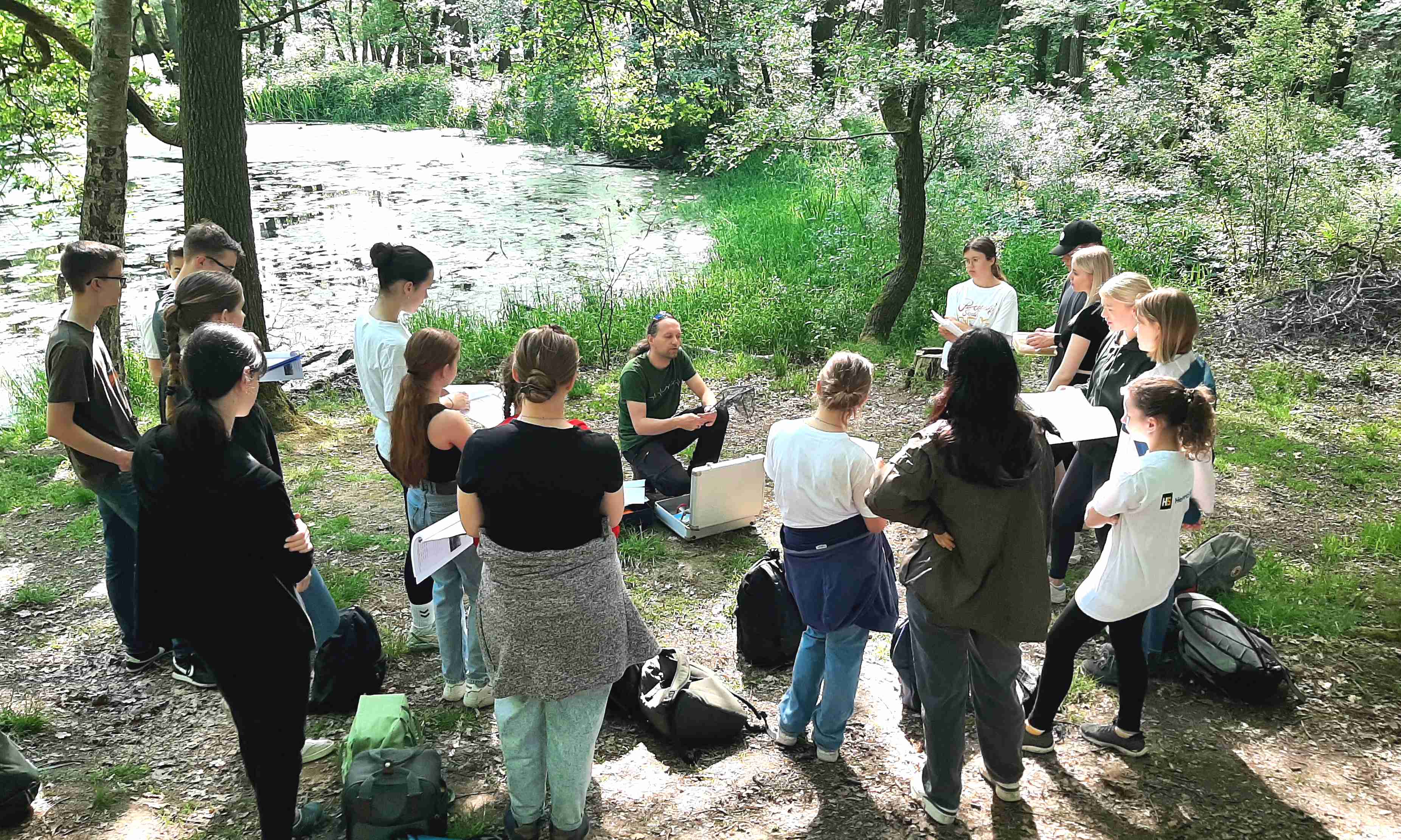 Am 10. Juni 2025 unternahmen die Grund- und der Leistungskurs Biologie eine spannende Exkursion in den Zwickauer Plotzschgrund. Von 08.45 Uhr bis 13.30 Uhr erkundeten die Schülerinnen und Schüler in Dreiergruppen verschiedene Ökosysteme in der Umgebung. Im Fokus standen dabei ein Mischwald, ein Bachlauf sowie ein Fichtenforst.