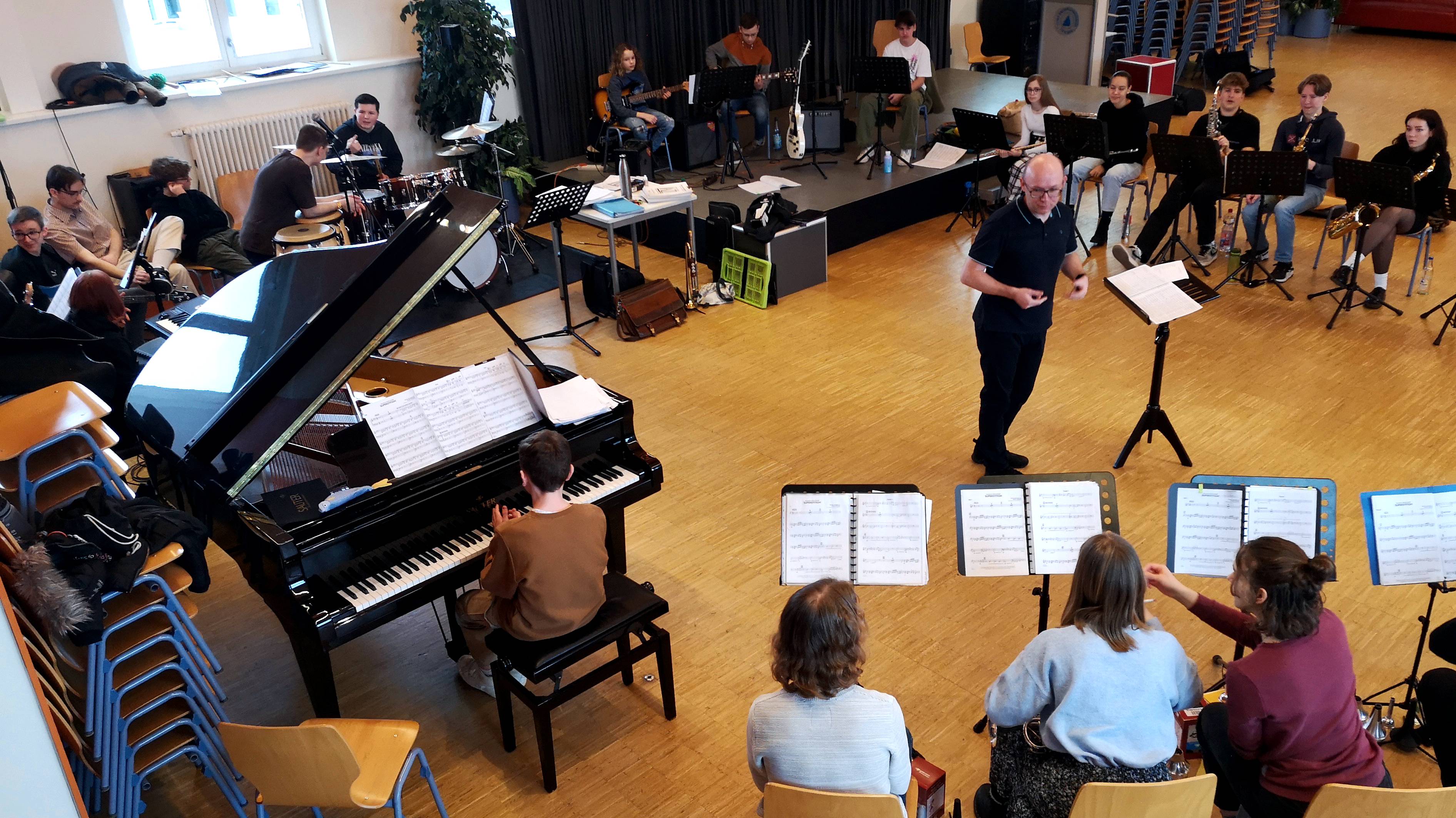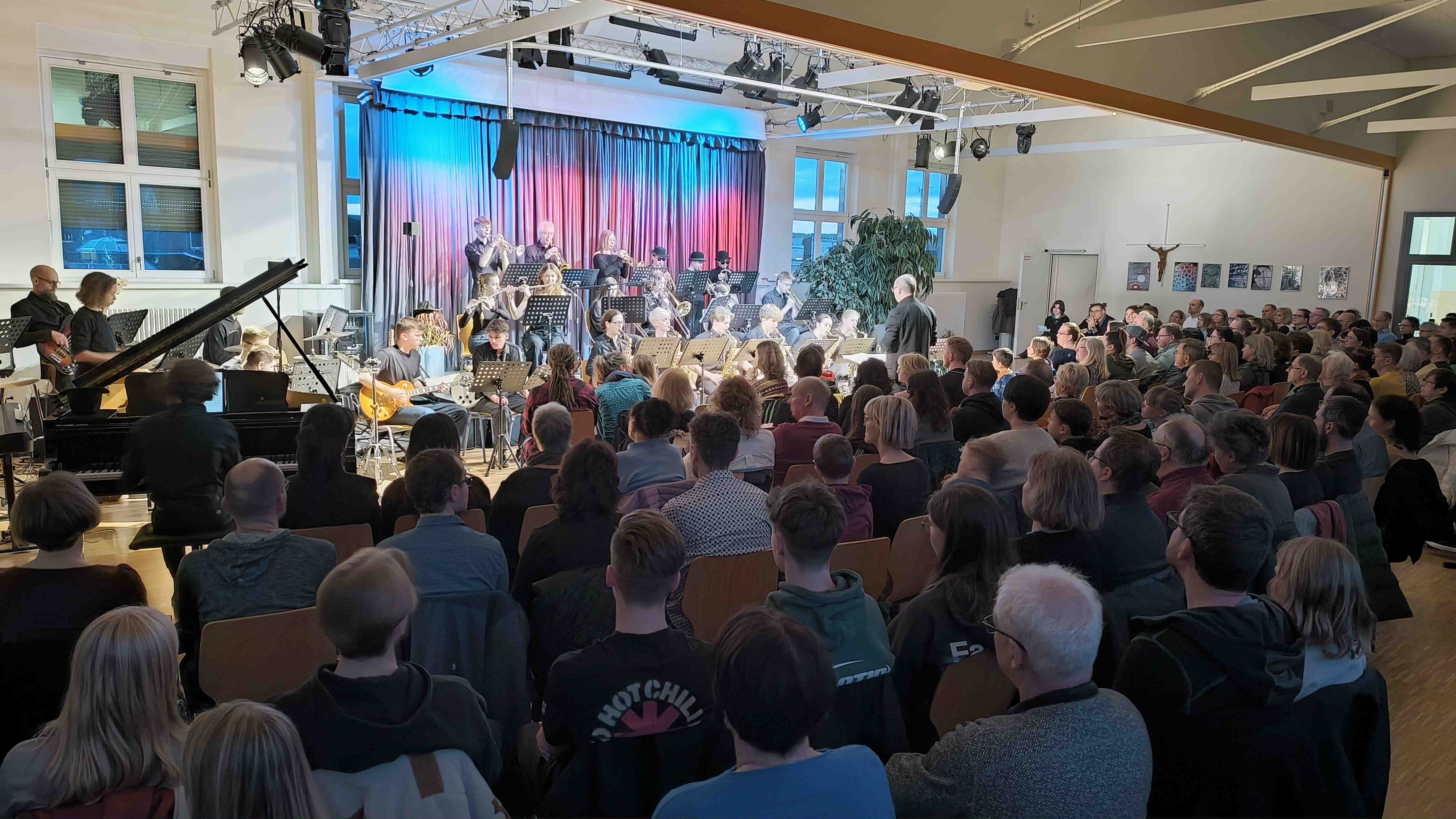 Vom 24. bis zum 26. Januar 2025 fand der diesjährige Big Band Workshop statt – ein Wochenende voller Musik, guter Stimmung und jeder Menge Spaß. Los ging es am Freitag mit der ersten Probe, bei der sich die komplette Big Band des Peter-Breuer-Gymnasiums sowie einige Gäste aus dem Posaunenchor der Paulusgemeinde zusammenfanden. Der Samstag stand ganz im Zeichen der intensiven Probenarbeit. Sechs Stunden lang wurde an den Stücken gefeilt – eine echte Herausforderung, aber die Motivation war groß!