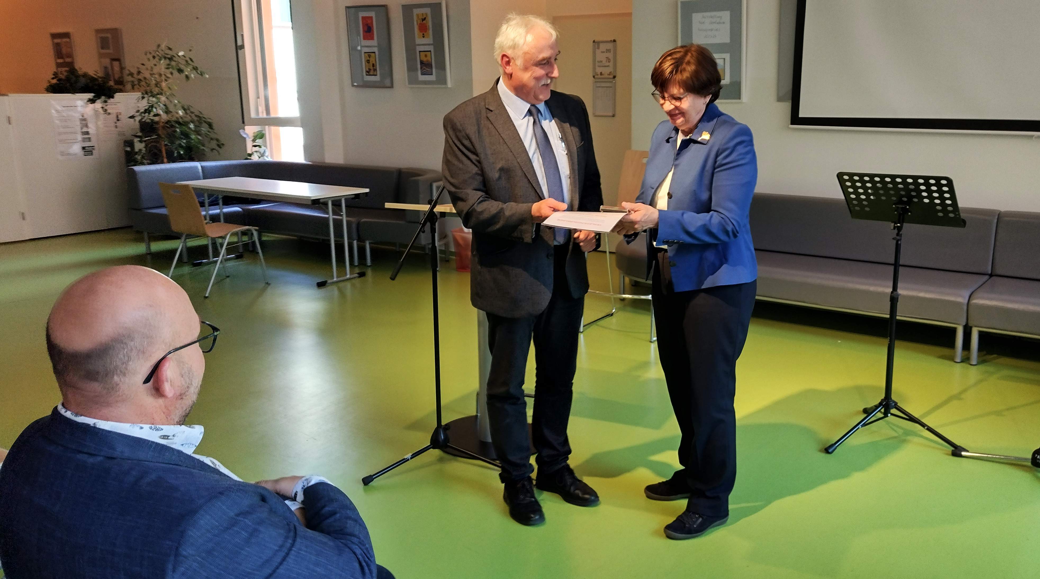 Im Rahmen der ersten Lehrerkonferenz zum Start ins Schuljahr 2025/26 wurden am 06. August 2025 Mitglieder des Kollegiums für ihre langjährige Tätigkeit an unserer Einrichtung geehrt. Auf fünfundzwanzigjährige Zugehörigkeit zum Peter-Breuer-Gymnasium können in diesem Jahr das Ehepaar Pridik sowie die Kollegin Bretschneider zurückblicken.