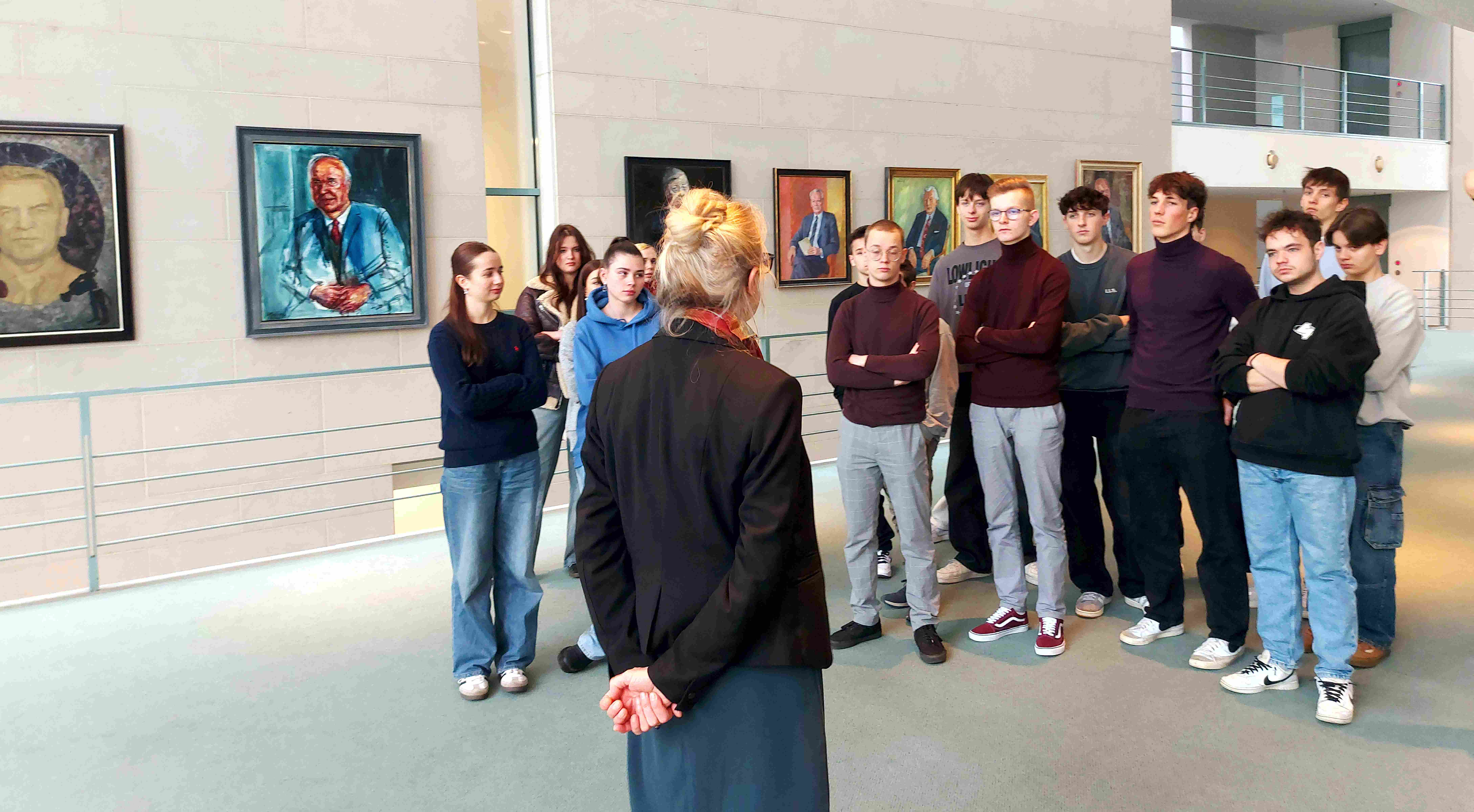 Am 28. Januar 2025 um 8 Uhr morgens starteten wir (23 Schülerinnen und Schüler der K11 GRW Kurse zusammen mit Herrn Wagner und Frau Sämann) zur alljährlichen Berlinfahrt in Richtung Hauptstadt. Auf uns warteten bis zum 31. Januar 2025 vier Tage voll mit Besuchen in unterschiedlichsten Museen, Gedenkstätten und politischen Einrichtungen. Gleich nach unserer Ankunft stand ein Besuch im Bundesministerium der Verteidigung sowie im Haus der Wannsee-Konferenz an.