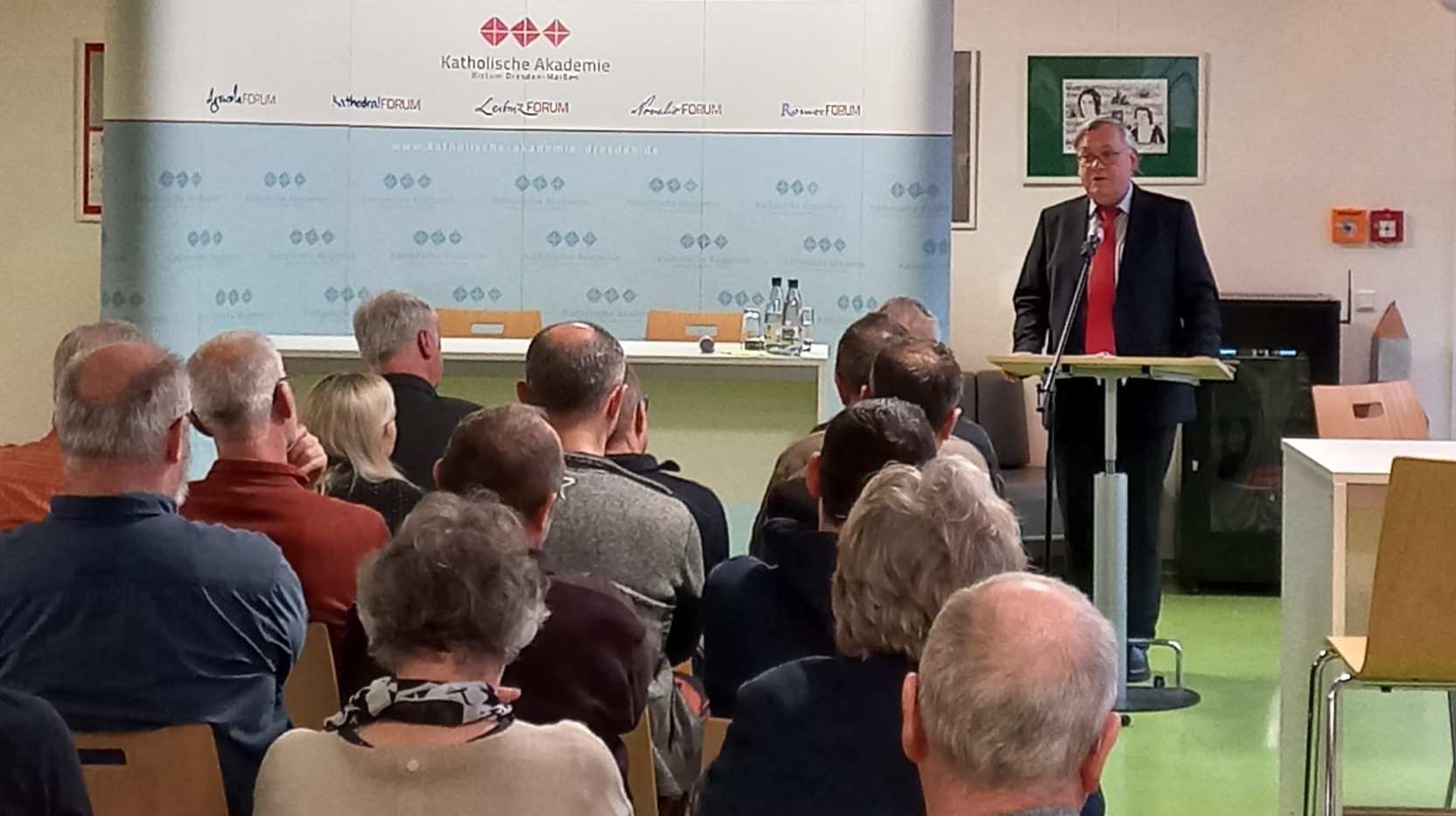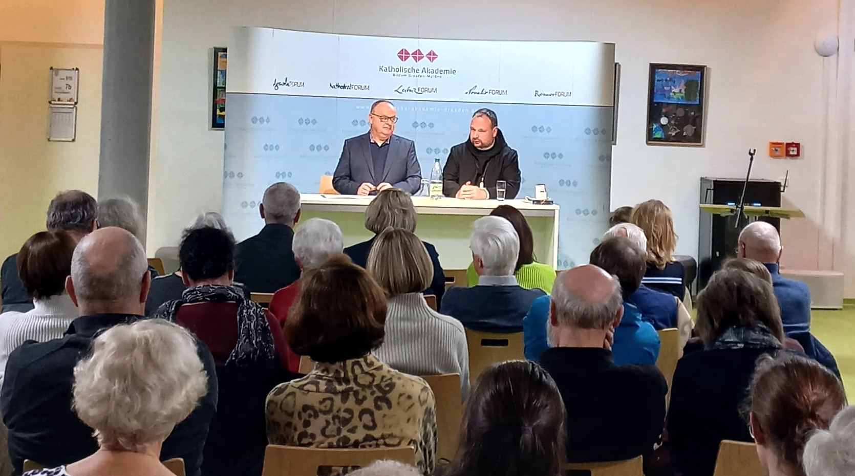 Wie schützen wir unsere Demokratie und die Orte, die unser Zusammenleben prägen? Dieser Aufgabe hatte sich beruflich unser Gast im Römerforum der Katholischen Akademie am 09. April 2025 verschrieben. Dirk-Martin Christian ist seit Juli 2020 Präsident des Landesamtes für Verfassungsschutz in Sachsen. Herr Christian machte deutlich, dass in einer Zeit, in der die Grenzen zwischen Wahrheit und Fake News zunehmend verschwommen sind, es unerlässlich ist, dass wir als Gesellschaft zusammenstehen und den demokratischen Prozess aktiv mitgestalten.