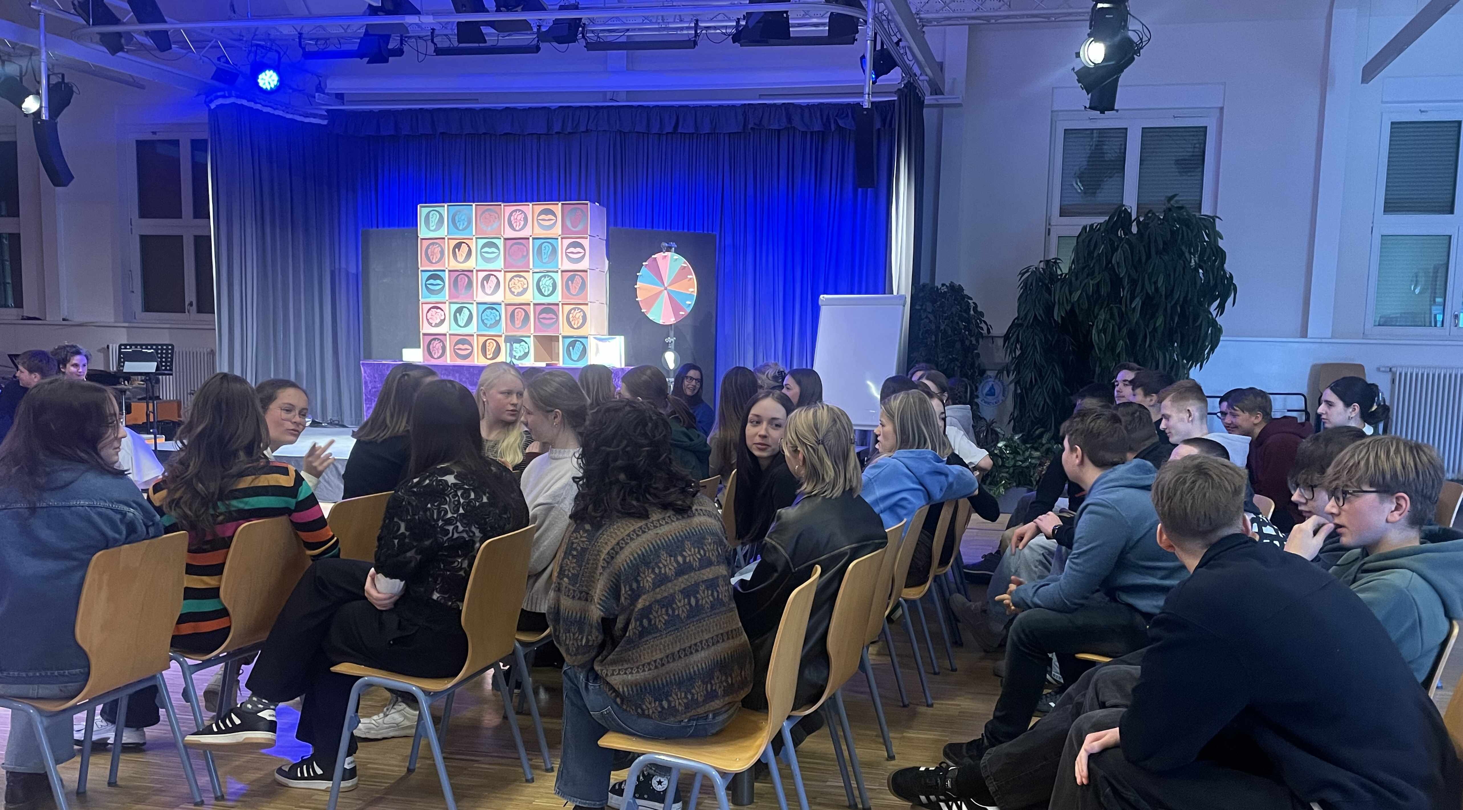 Alle Klassen der neunten Jahrgangsstufe hatten sich am Dienstag, dem 18. März 2025, zu einem interaktiven Theaterstück zusammengefunden.