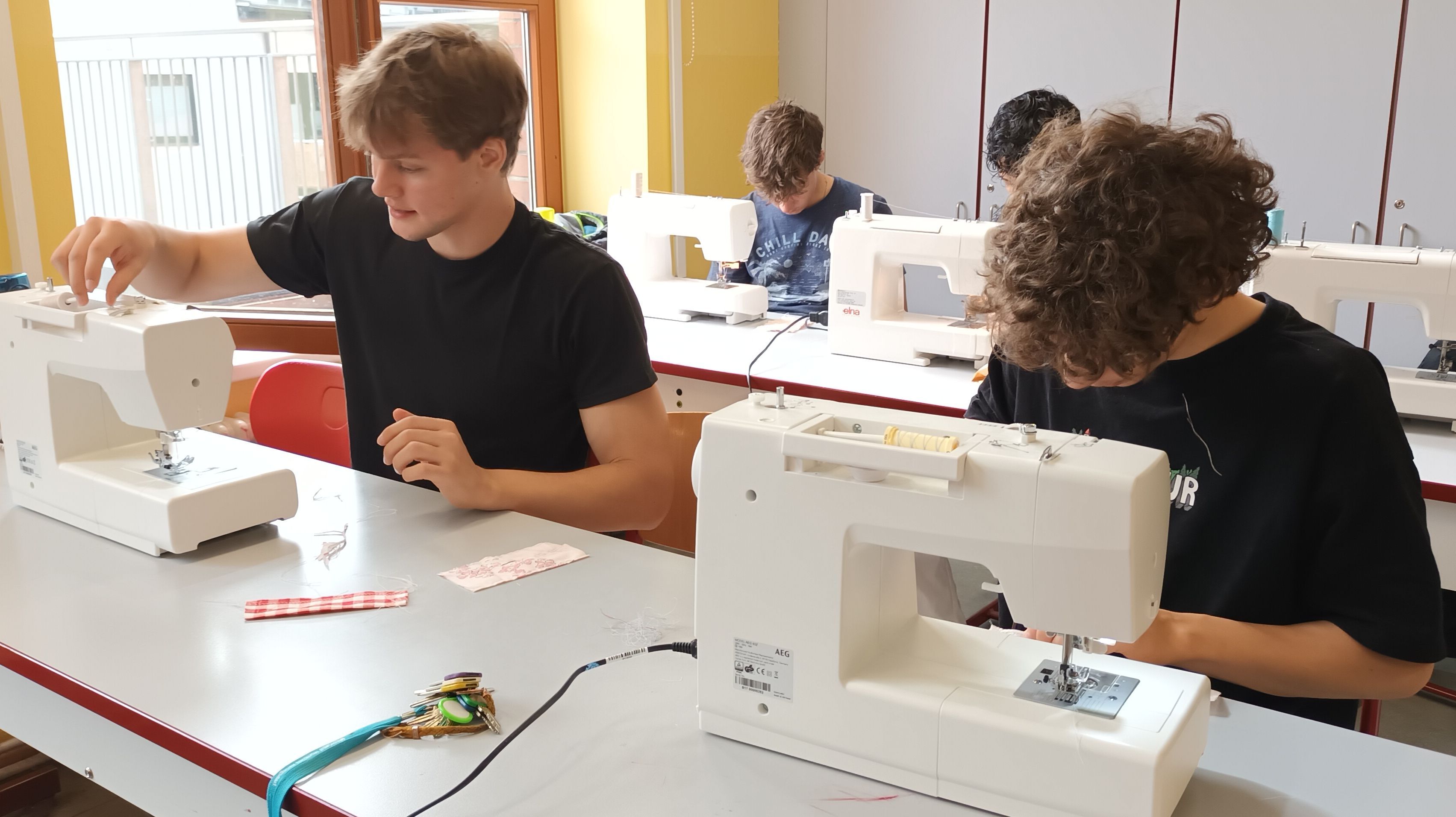 Ein Teil der Schülerinnen und Schüler der 11. Jahrgangsstufe testete zu den Projekttagen seine kreativen Fähigkeiten. Mit unglaublichem Engagement und Ausdauer ließen sich insbesondere die jungen Herren von Wolle und Häkelnadel oder der Nähmaschine nicht unterkriegen. Es entstanden an der Nähmaschine am ersten Tag Brotkörbchen und am zweiten Tag kleine Federmäppchen.
