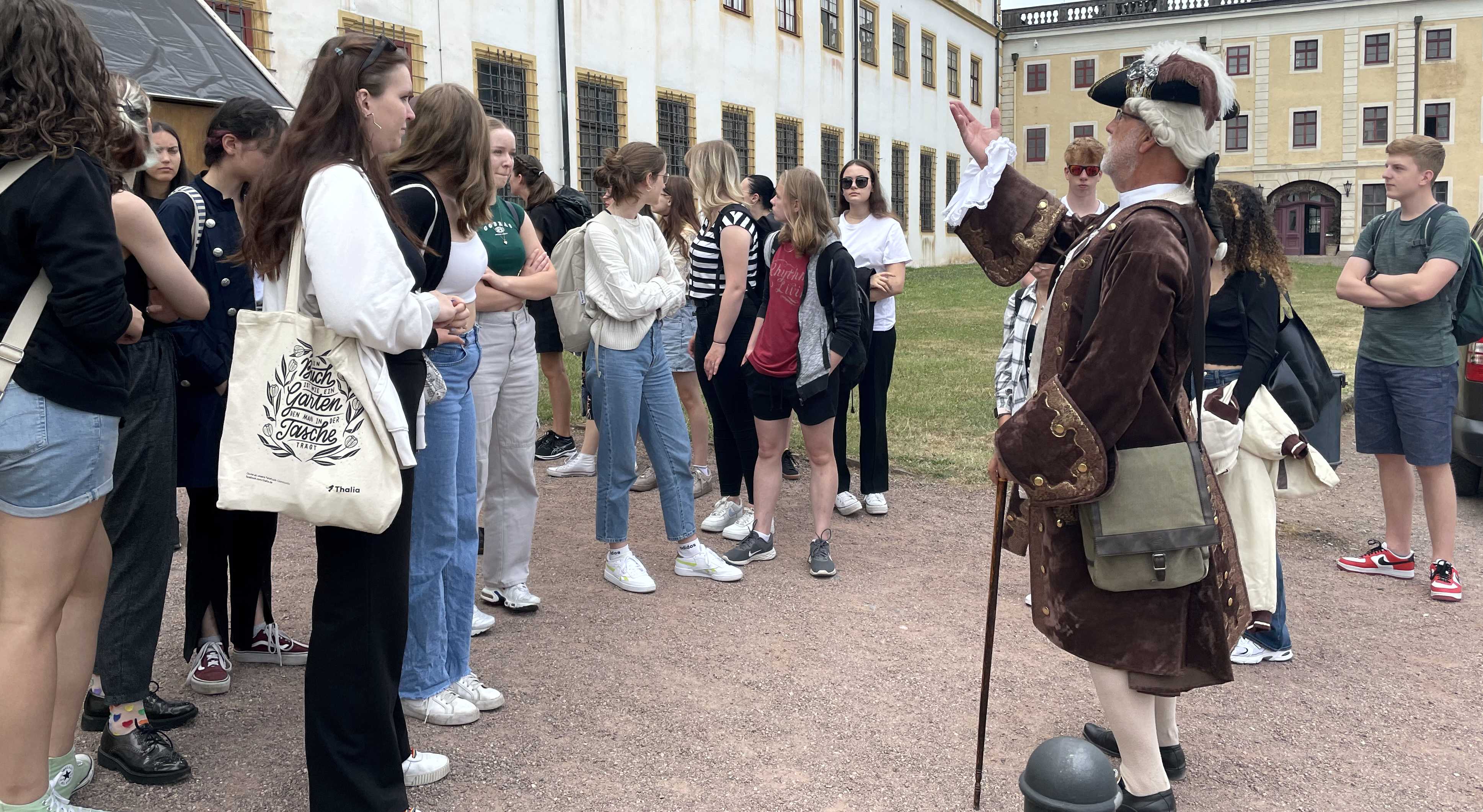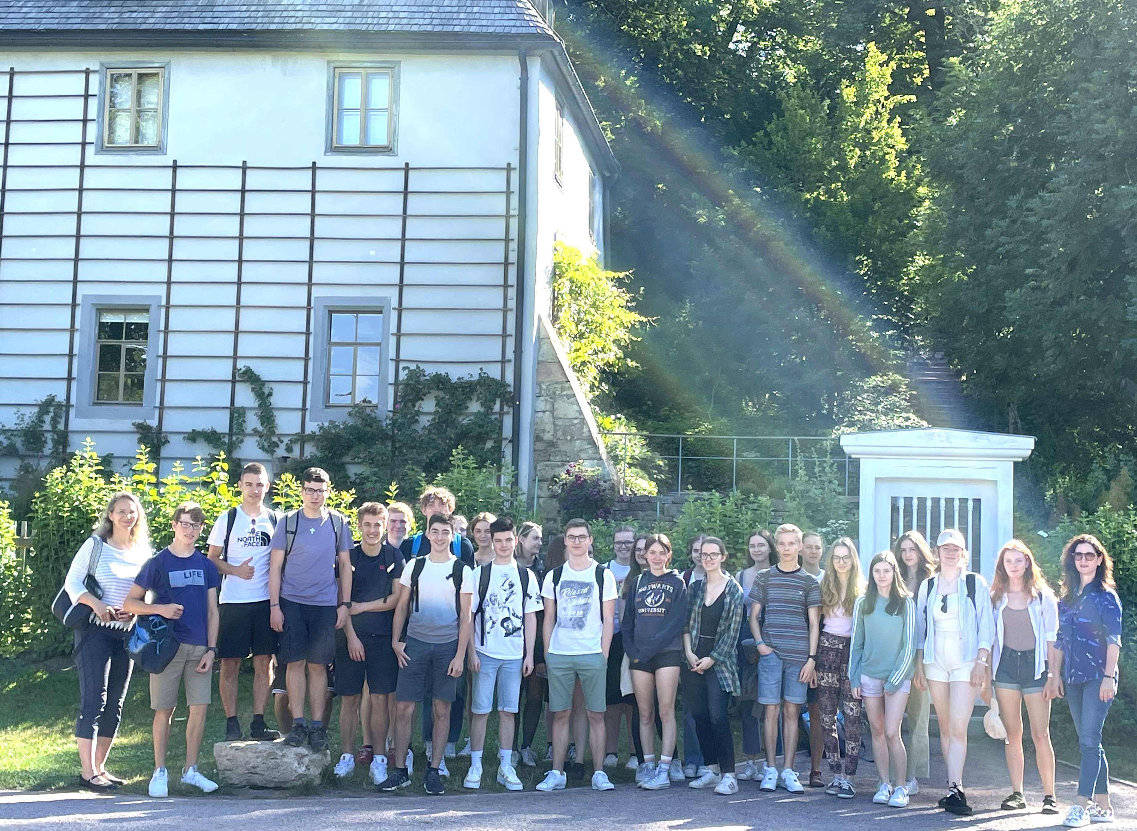 Am Donnerstag, dem 05. Juni 2025, trafen sich die Leistungskurse des Faches Deutsch zu einem illustren Ausflug Richtung Weimar. Vor Ort angekommen, starteten wir den Tag mit einem idyllischen Spaziergang durch den Park an der Ilm und besichtigten dort das Gartenhaus Goethes, welches er, geschenkt von Carl August, sechs Jahre bewohnt hatte.