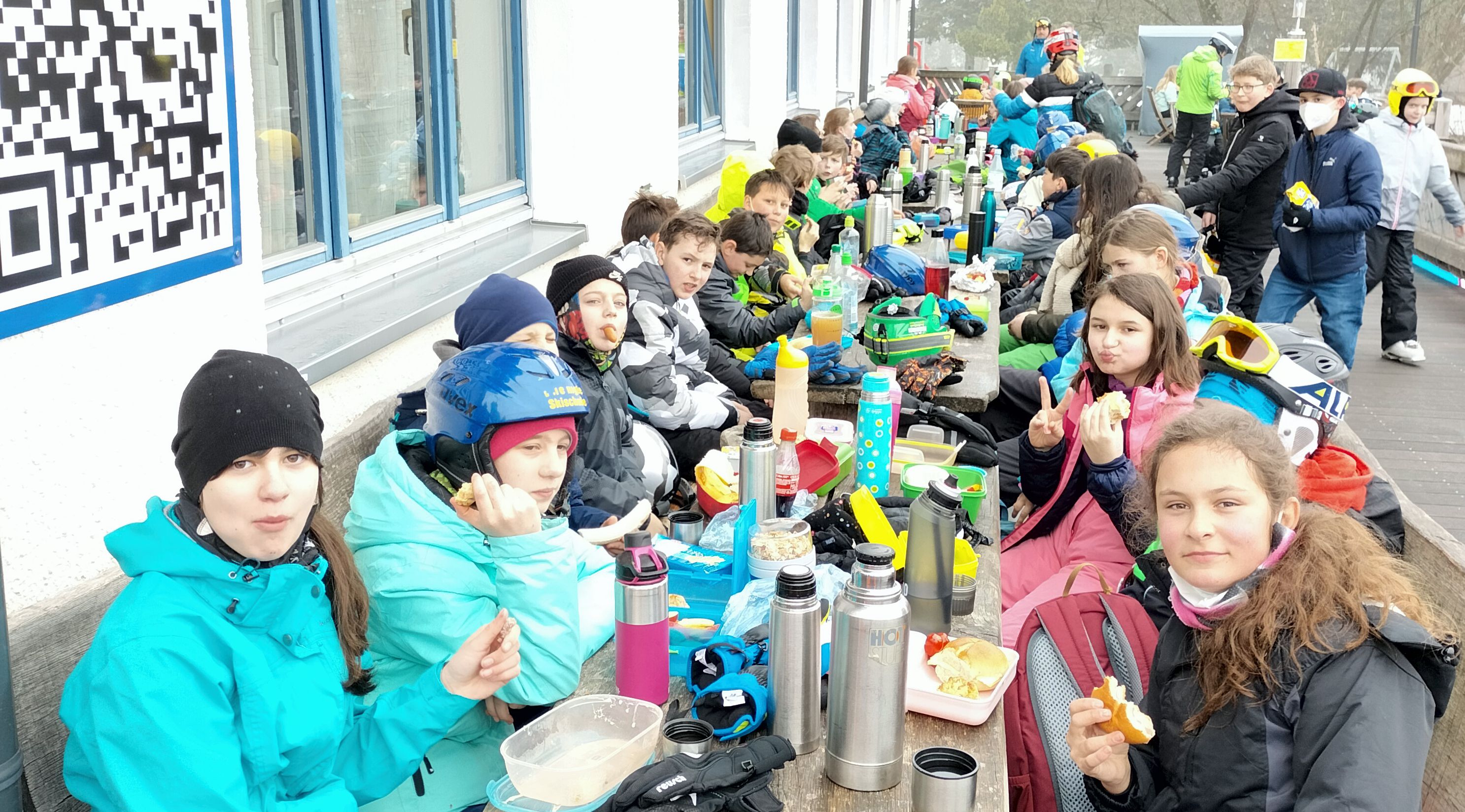 In der Woche vom 05.Januar 2025 bis 11.Januar 2025 sind wir ins Skilager nach Österreich in die Wildkogelarena gefahren. Am Sonntag früh sind wir voller Vorfreude um 7 Uhr an der Schule gestartet. Die Fahrt lief ohne Probleme ab und wir kamen ca. 15 Uhr an. Nachdem wir alle Sachen in die Gondeln verteilt hatten, fuhren wir auf den Berg und luden unser Gepäck in eine Pistenraupe.