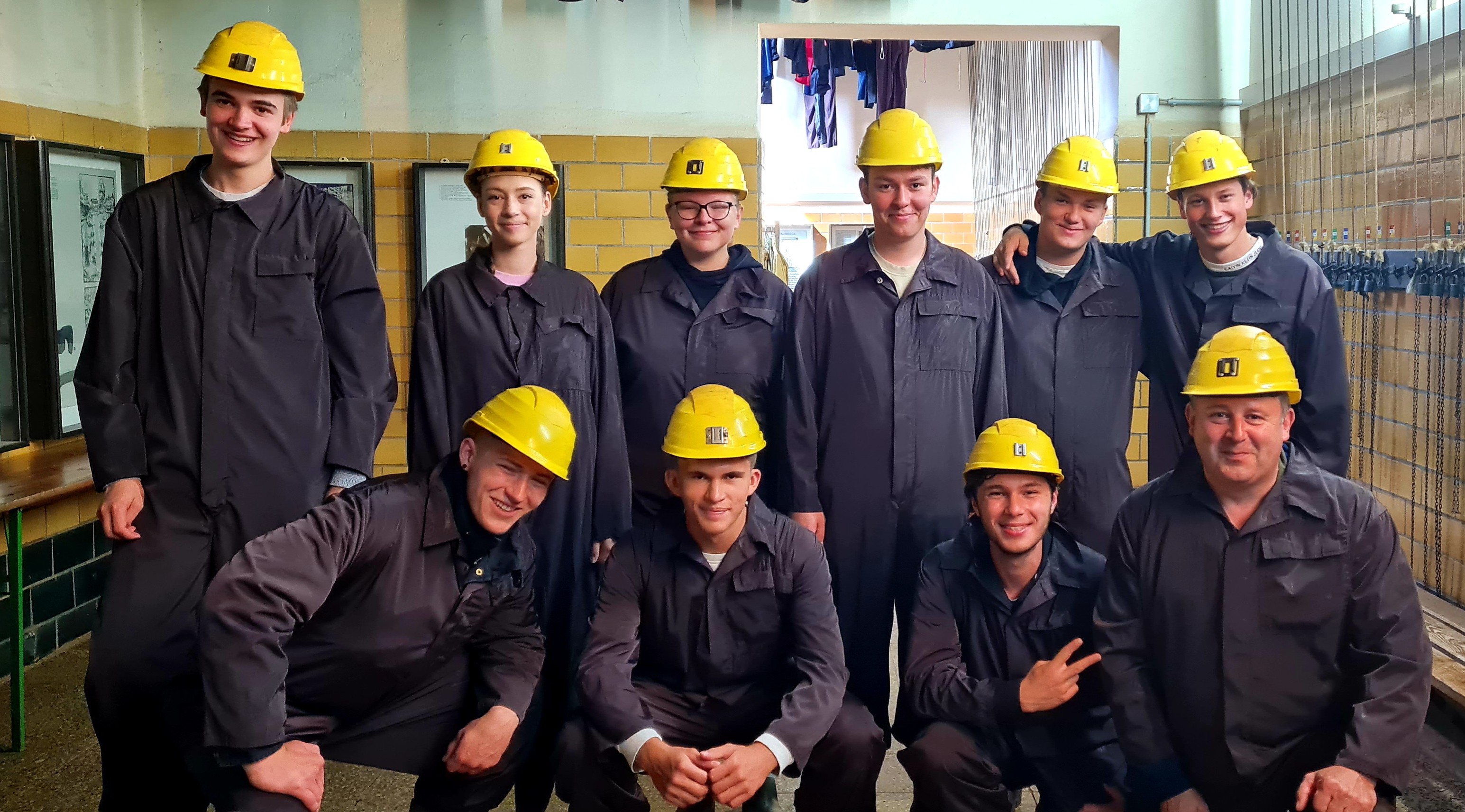 Am Mittwoch, den 24.06.2015, war fast der gesamte Geographiekurs der 12. Klasse und ein paar ehemalige Schüler der Klasse von Herrn Muck mit diesem im Besucherbergwerk "Grube Tannenberg". Die Besichtigungstour startete gegen 10:30 Uhr. Davor haben wir ein Foto gemacht, falls wir den Ausgang nicht wieder finden sollten, da wir zu einer normalen Führung noch zusätzlich eine Spezialtour durch das Bergwerk bekommen haben.