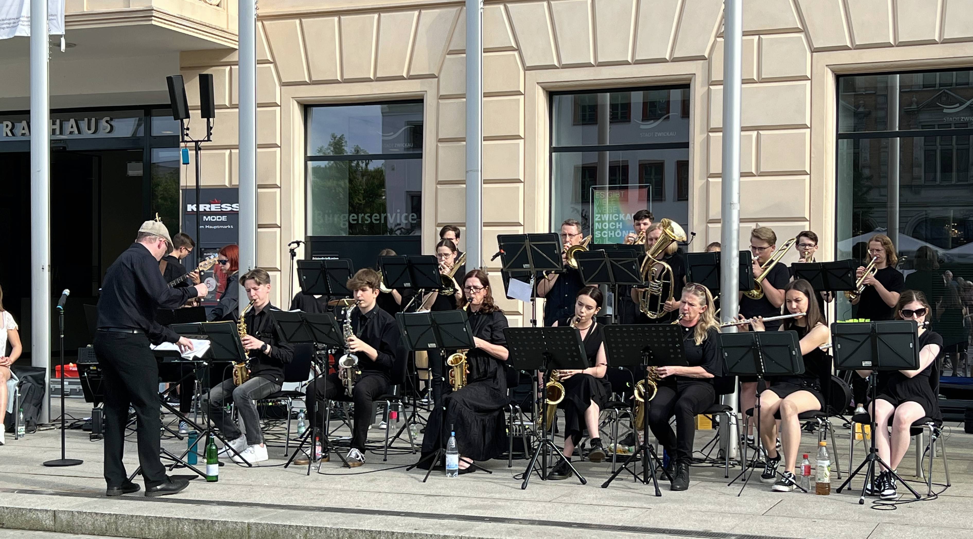 Im Rahmen der Veranstaltungsreihe „Kein Schlussstrich“ haben Tänzerinnen der TanzAG des Peter-Breuer-Gymnasiums am 11. Mai 2025 an einer Performance zum Gedenken an die Opfer des NSU in Zwickau teilgenommen.