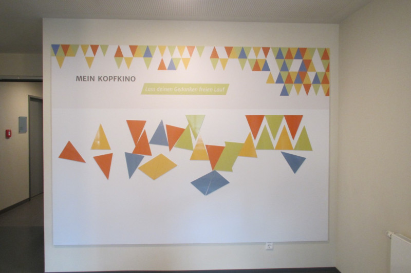 Mit unseren gewonnenen Steinen sollten wir nämlich einen Gegenstand mit W an der großen Lego-Wand stehenlassen.