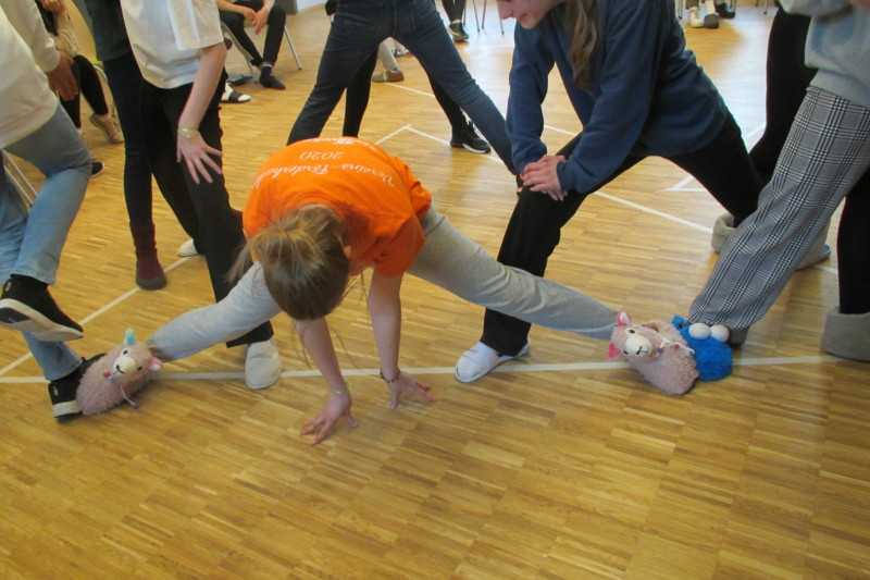Erst lösten wir die „secret friend- Aktion“ auf, dann bekam jede/-r Schüler/-in einen Zettel an den Rücken geklebt und die Mitschüler schrieben dann etwas zu der Person, wie zum Beispiel einen Spruch oder einfach etwas, was man der Person schon immer sagen wollte.