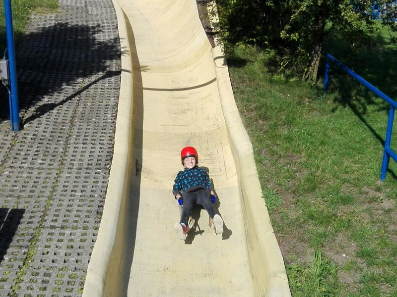 Wir, die Klasse 6b, wanderten am Mittwoch, den 23.8.2017, ca. 9.00 Uhr von der Schule aus zur Sommerrodelbahn, in Richtung Westsachsenstadion. Nach einer Stunde Fußmarsch durch die schöne Innenstadt von Zwickau kamen wir auf der Sommerrodelbahn an. Es war noch ein wenig kühl und ein Mann erklärte uns, dass dort schon viele Profirodler gefahren sind und es nur wenige und einfache Regeln gäbe.