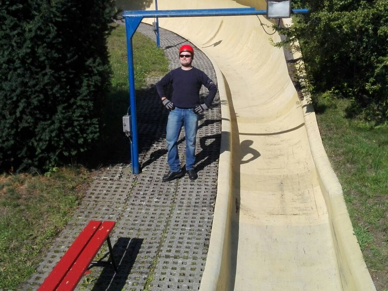 Die Schlitten sahen ähnlich aus wie normale Hornschlitten, nur mit Rädern an der Unterseite. Jeder bekam noch einen Helm, der einer halben Melone glich, und es konnte los gehen. Wir sahen sehr lustig aus, außer die, die es sich trauten ohne Helm zu fahren. Doch schon nach ein- bis zweimal rodeln nahmen auch die anderen ihre Helme ab, denn es war wirklich keines Falls gefährlich. Die Bahn war nicht sonderlich lang. Es gab zwei Kurven, die etwas steil waren und dann war der Nervenkitzel auch schon wieder vorbei.