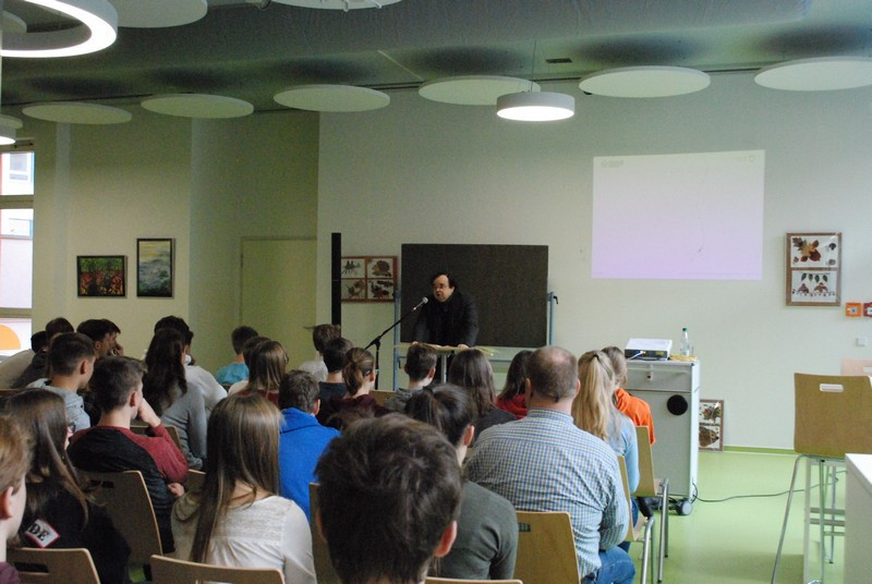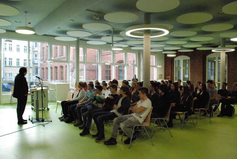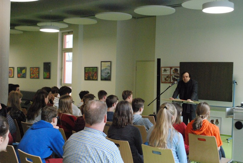 Dieser Vortrag war in großen Teilen interaktiv gestaltet, sodass die Schüler ihr Lektüre- Vorwissen zur Erzählung einbringen konnten. Man erfuhr ebenso auch Wissenswertes über den Schreibprozess eines Autors ( "Der Autor ist wie ein Gott. Er erschafft. Wenn er schreibt: Der Baron von und zu ... IST..., dann gibt es diesen Baron. Er hat ihn erschaffen.").