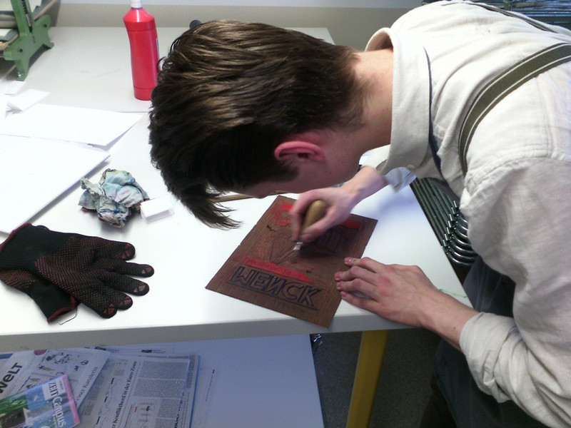Unter der Anleitung der Kunstlehrer Thomas Grunwald und Christian Siegel wurde im Kunst-Atelier in der Villa gezeichnet, gemalt und gedruckt.
