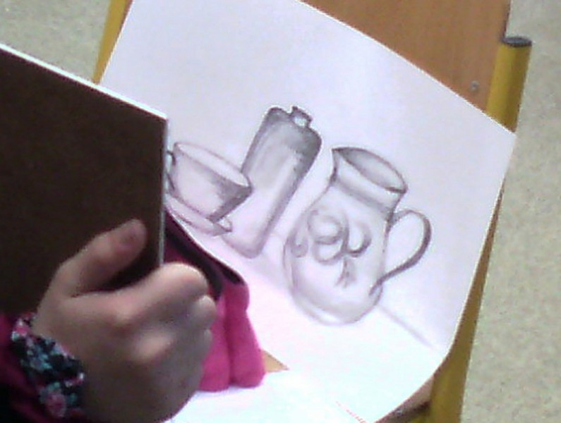Neben dem analytischen Zeichnen von Gegenständen standen das Malen und Zeichnen eines Stilllebens und verschieden Drucktechniken auf dem Programm. Auch das Experimentieren mit Stiften, Farben und Materialien kam nicht zur kurz.