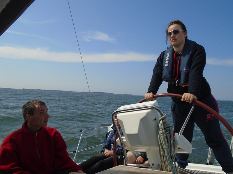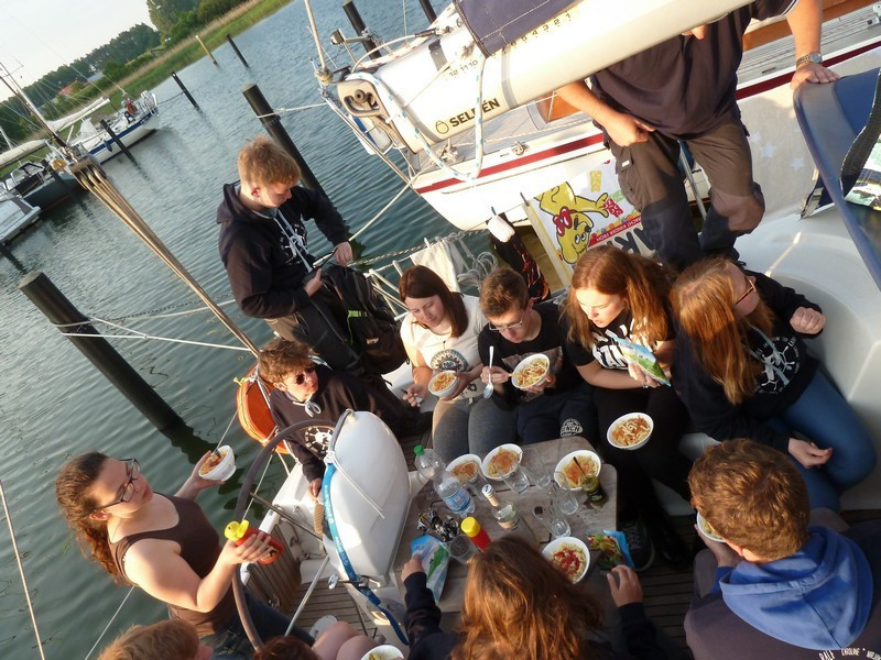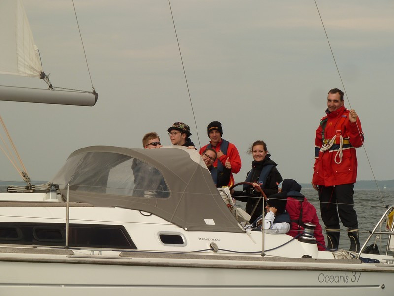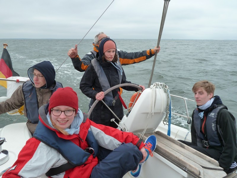 Als es dann am zweiten Tag ernst wurde und wir eingewiesen wurden, mussten wir uns ernsthaft fragen was wir das ganze Jahr überhaupt gemacht bzw. gelernt haben. Keiner hatte wirklich Ahnung, wie das Boot zu handhaben ist. Wohl oder übel stachen wir trotz Bangen in den großen weiten Greifswalder Bodden.