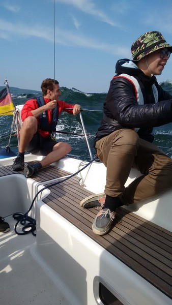 Ursprünglich war die weitere Reise nach Schweden geplant, diese wurde uns aber verwehrt aufgrund des starken Windes und der grünlichen Gesichtsfarbe einiger Seekadetten. Also legten wir einen Hafentag ein und schauten uns Sassnitz genauer an. Die Wellen konnten uns aber trotzdem nichts und wir beschlossen am Nachmittag, eine Trainingseinheit bei Windstärke 6 und 2m Wellenhöhe zu absolvieren. Seitdem konnte jeder das Boot auch besser einschätzen und beherrschen.