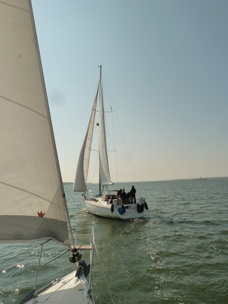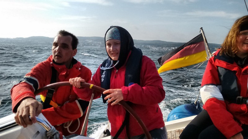 Am nächsten Tag ging die Reise dann weiter nach Sassnitz, wobei wir endlich die wahre Ostsee genießen konnten. Seekrankheit, fehlender Wind und starker Wellengang ermöglichten uns das Privileg einer Eskorte der Küstenwache, die uns höchstpersönlich zum Sassnitzer Hafen begleitete. Um auch wirklich sicher in den Hafen zu kommen, wartete dort noch eine zweite auf uns. Die Aladin wartete im Hafen bereits sehnsüchtig auf die Ankunft der Malik.