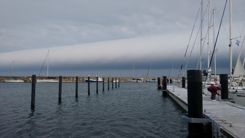 Im Sassnitzer Hafen gingen dann auch alle erst einmal 7-7 und durften einem ungewöhnlichen Wetterphänomen beiwohnen. (Morning Glory ? am Abend).