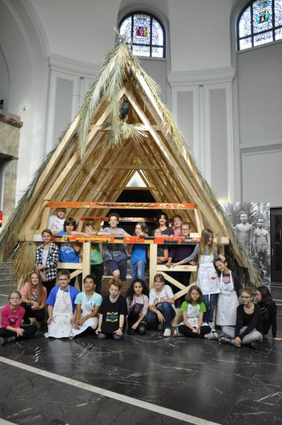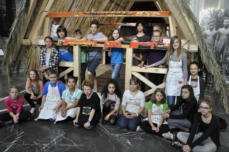 In Zusammenarbeit mit den Museumspädagoginnen der Kunstsammlungen Zwickau durften wir Schüler der Klasse 6a mit unserer Klassenlehrerin Frau Schnabel eine nachgebaute Südseehütte im großen Kuppelbau des Zwickauer Museums gestalten.