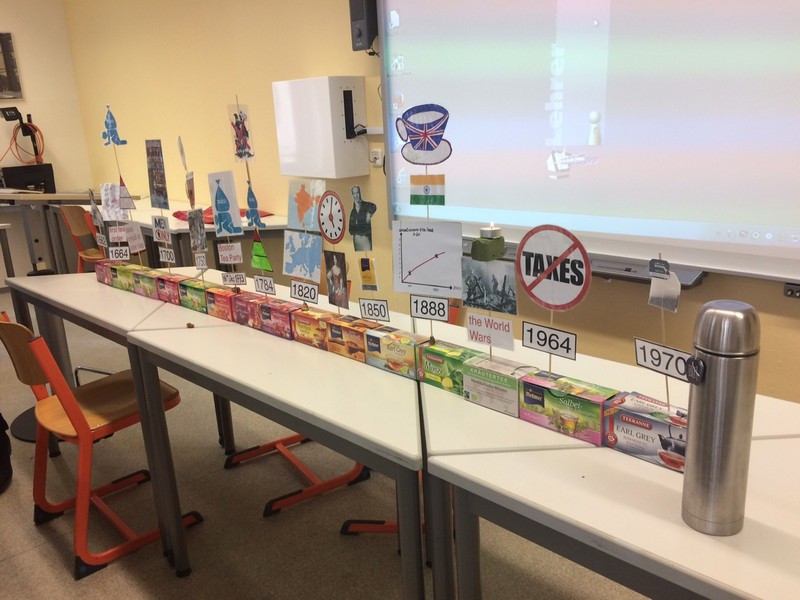 The English advanced course with Mr. Scheffler started a group project some weeks ago, creating timelines on certain topics, which were supposed to give an impression of the so-called "Britishness".