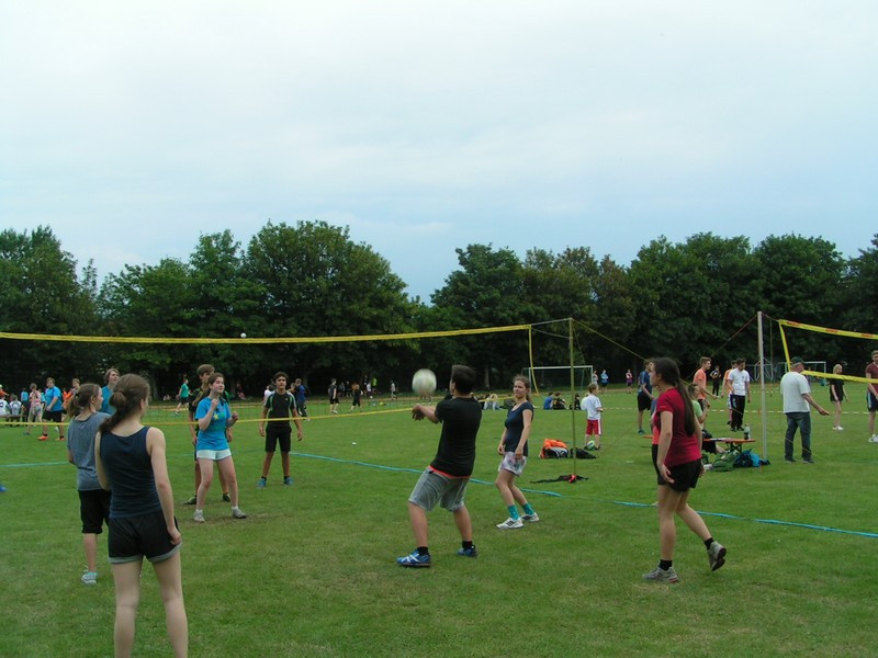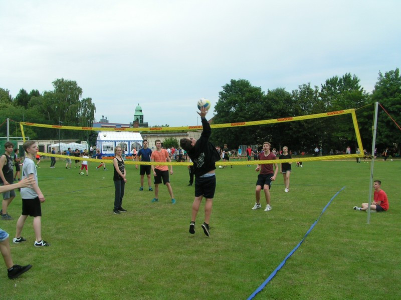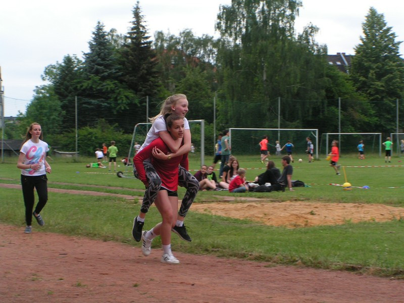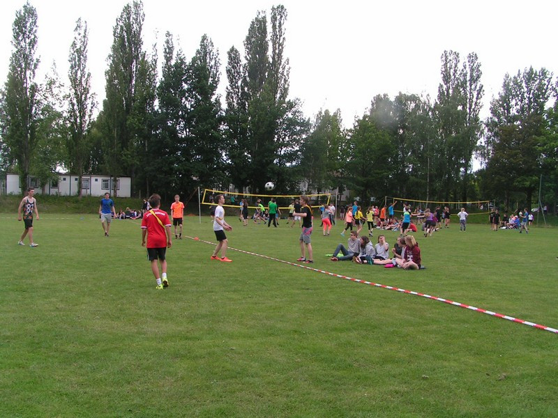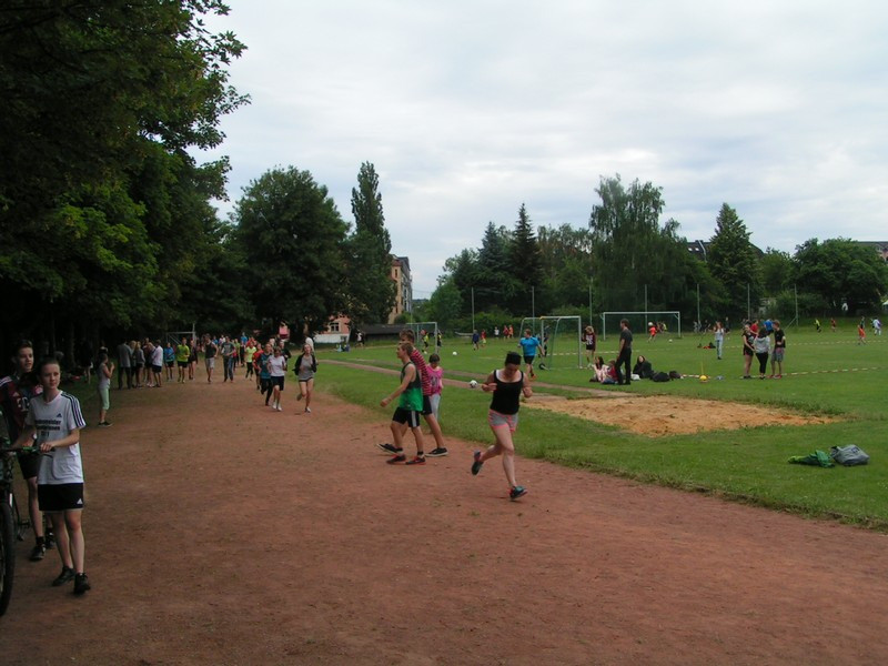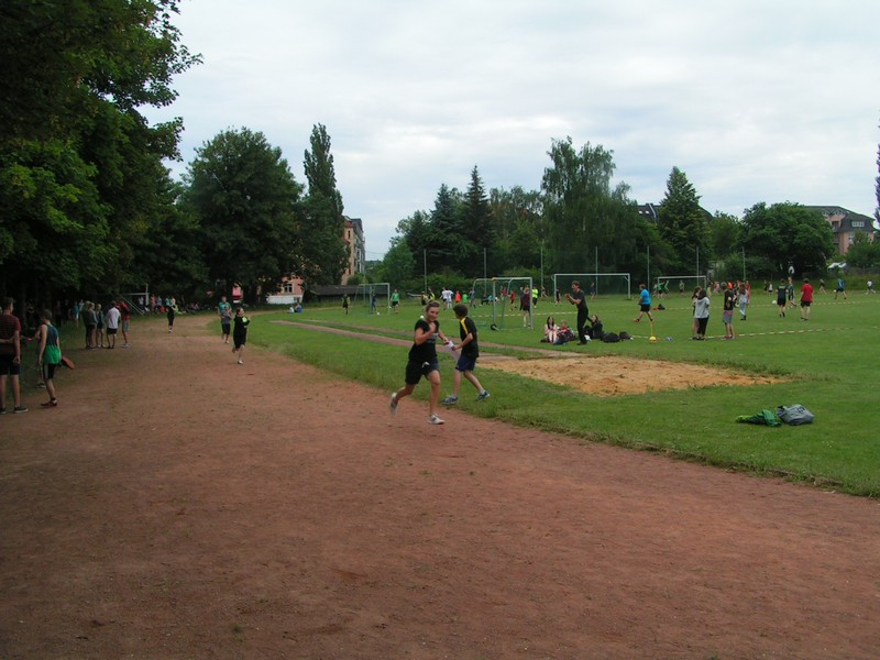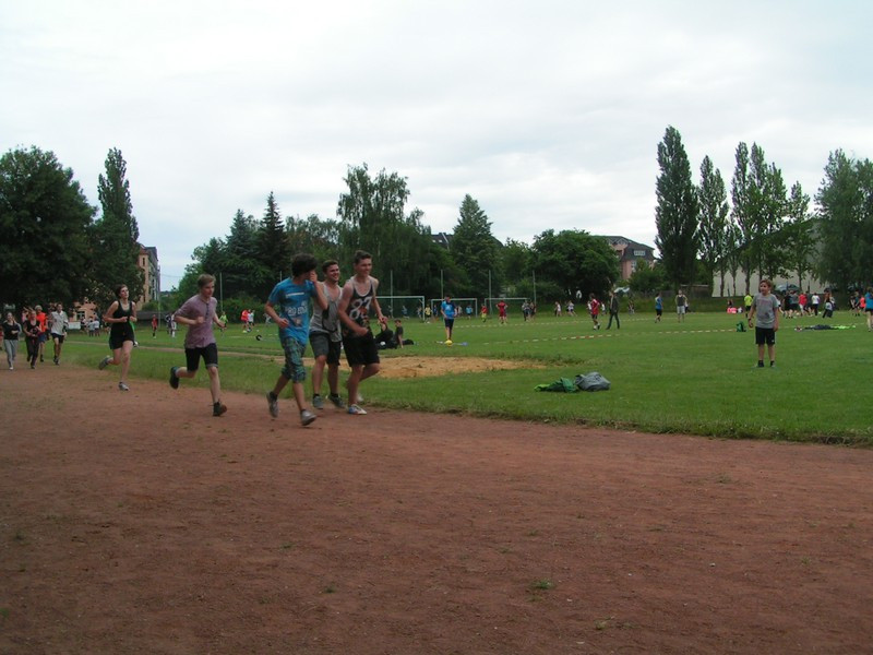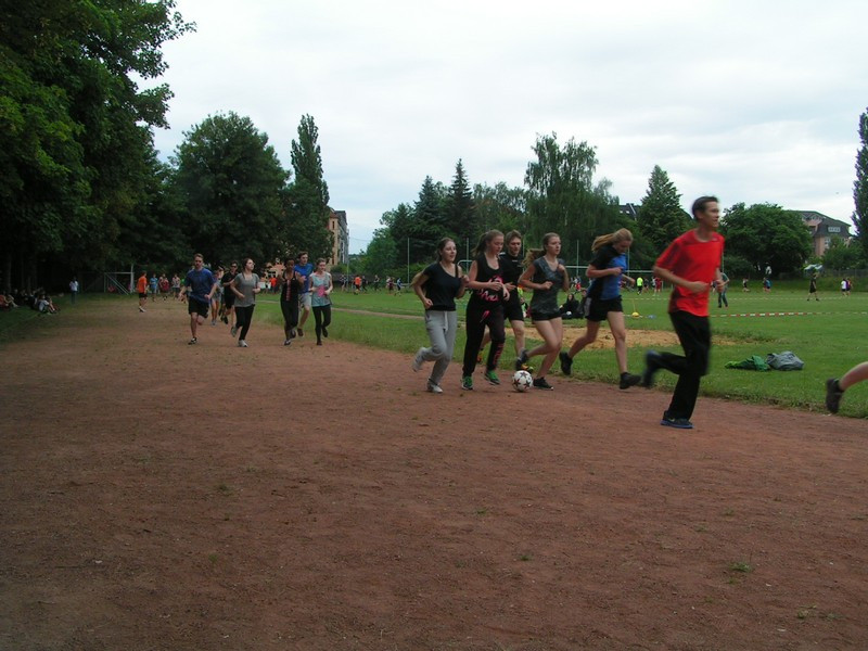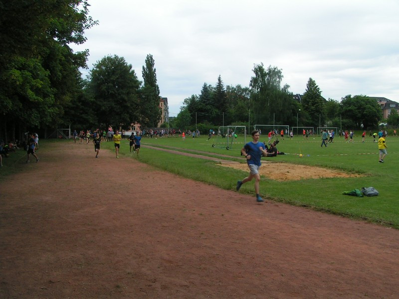 Und darüber hinaus sind natürlich zahlreiche andere Sportarten vertreten: nicht aber die mir bis zum letztjährigen Sporttag völlig unbekannte Disziplin "Jugger" - freilich musste ich, magister linguae Latinae und antiker Mensch, der ich nun einmal bin, gleich fasziniert dabei zusehen, erinnerte das (allerdings hoch formalisierte) Treiben doch stark daran, was sich in römischen Amphitheatern zugetragen haben mag, wenn die Gladiatoren aufeinander losgelassen wurden. Diese hochinteressante Disziplin hat man uns - leider - unterschlagen, was wohl daran liegt, dass Ferenz (es gibt nur einen!) sein Abitur nun (zwar noch nicht in der Tasche, aber doch immerhin) hat.