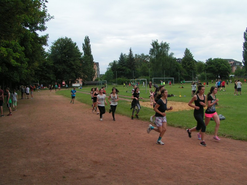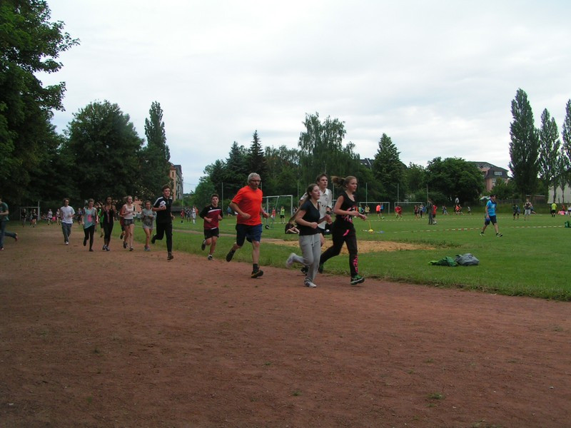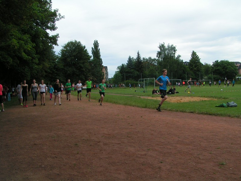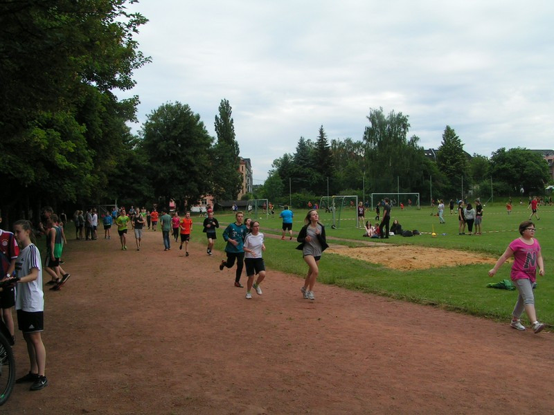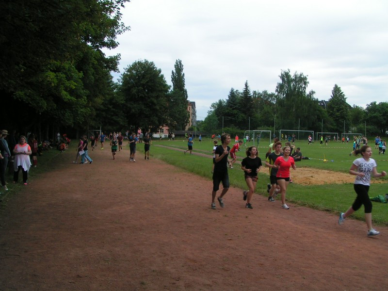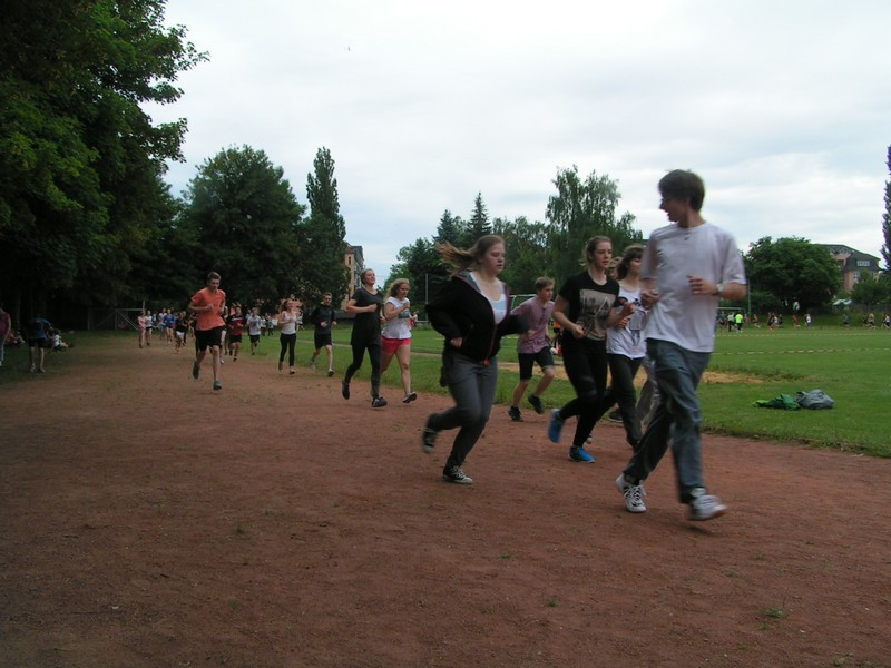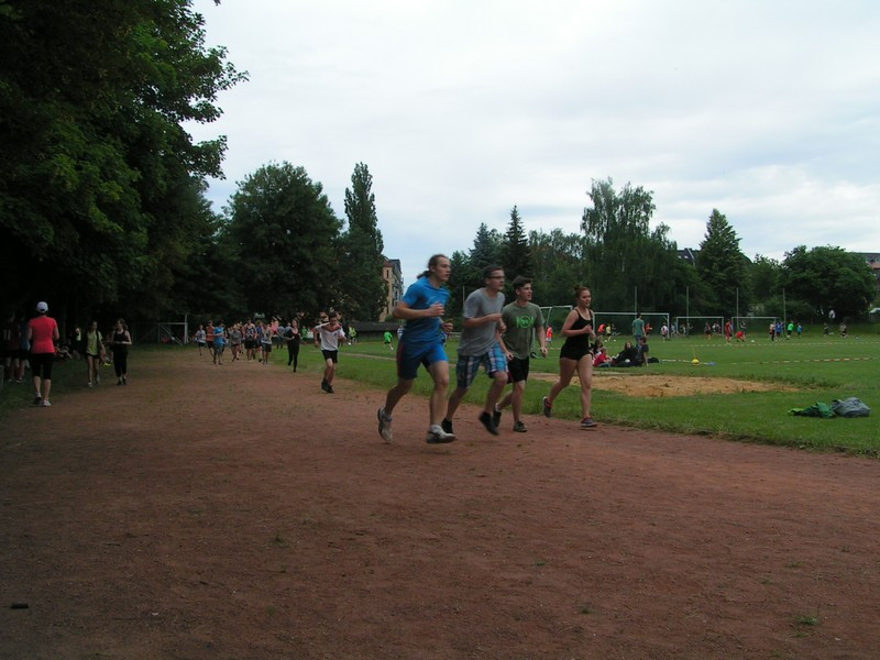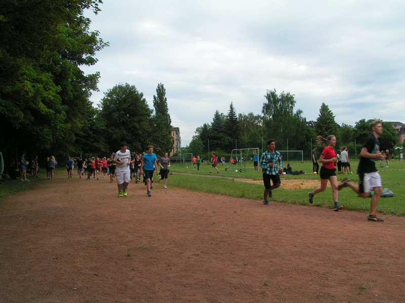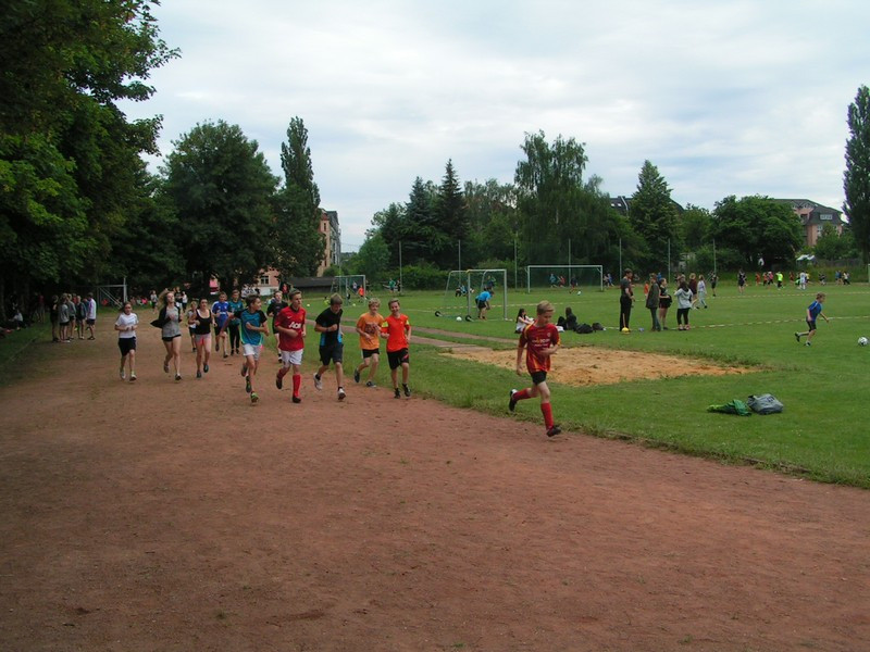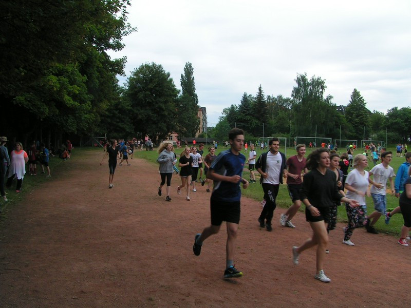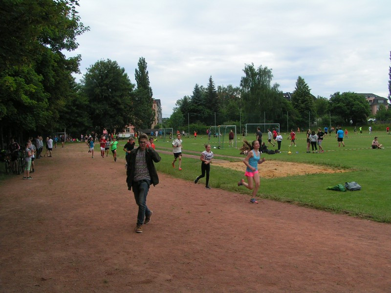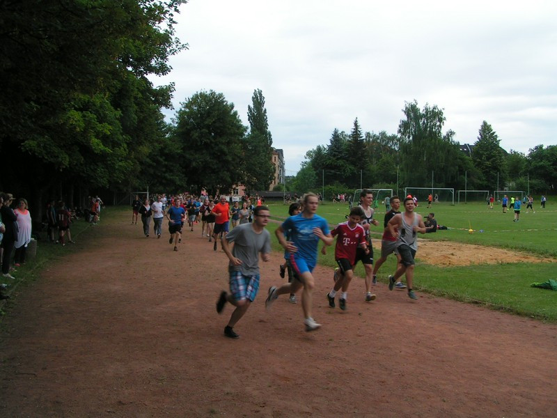 Pünktlich 17.30 Uhr: der Benefizlauf. Höhepunkte: die Sieger(innen)ehrung durch die Schulleitung persönlich (das muss man zur Kenntnis nehmen: eine Aufwertung des Tages) und das traditionell am Ende der Sportlichkeiten durchgeführte Fussballspiel: Lehrer gegen Schüler (in beiden Mannschaften nur männliche Teilnehmer, wenn ichs richtig gesehen habe); aber oh weh, oh weh, ihr Lehrer, wo seid ihr da geblieben - der Ausgang 7:2 für die Schülermannschaft (ja, Jonas und Marcel, wie versprochen: hier steht es!) ist doch etwas ..., wir werden eben älter!