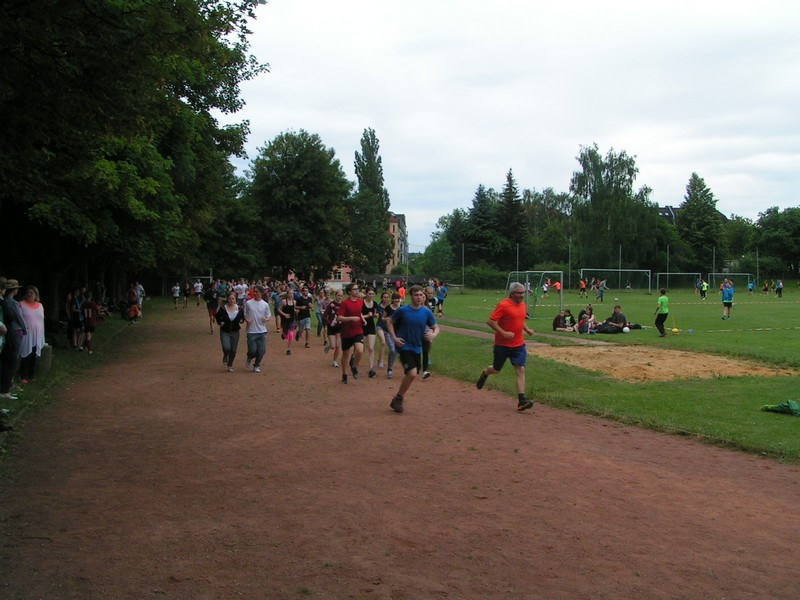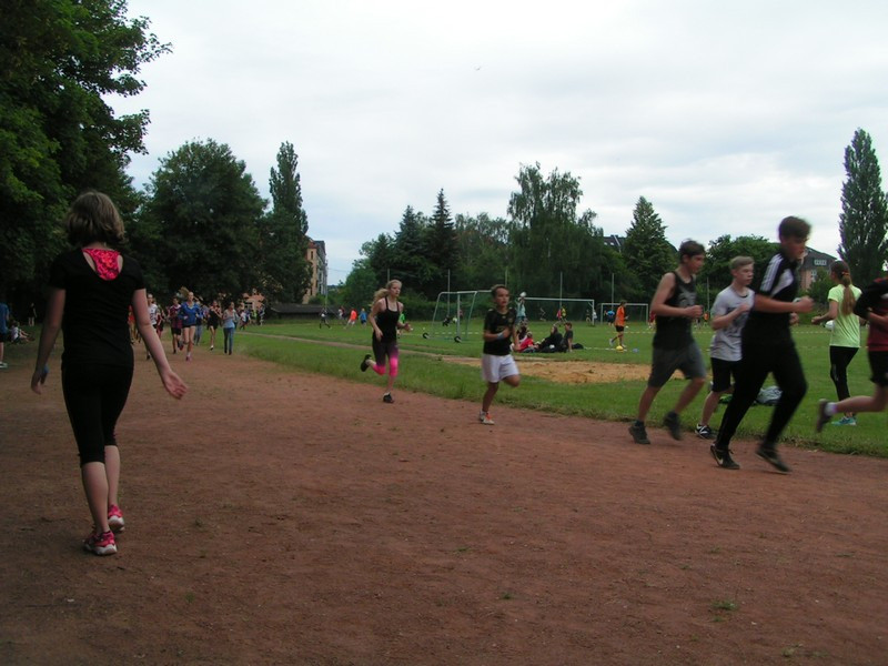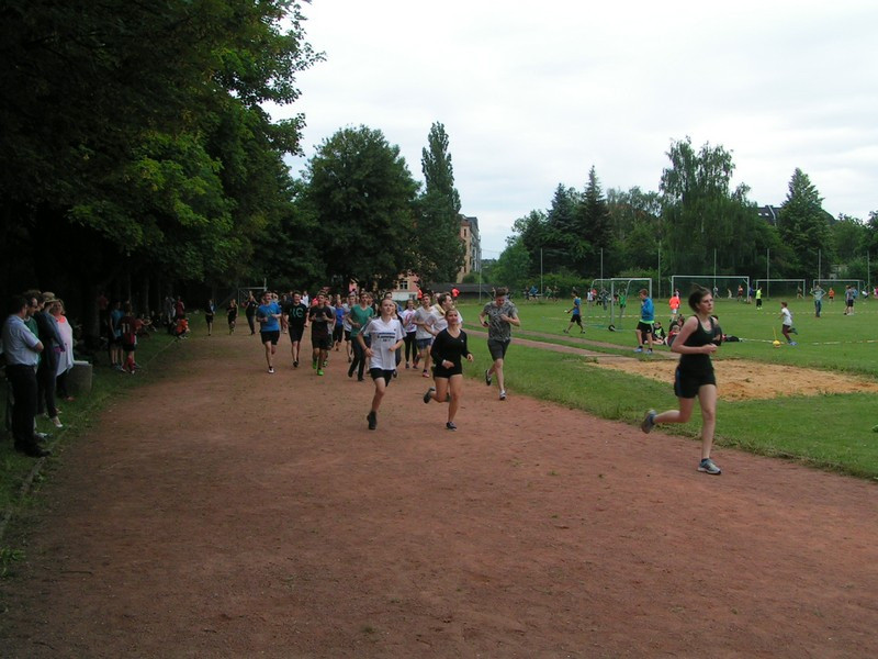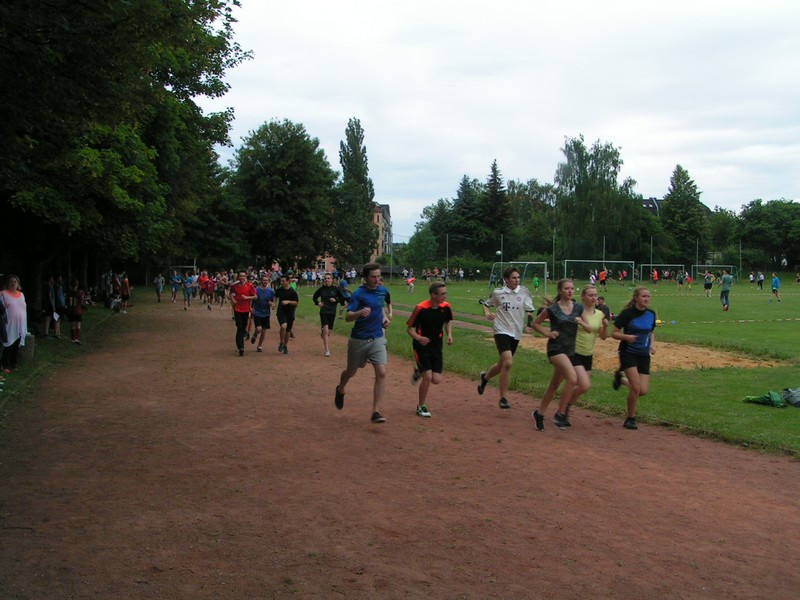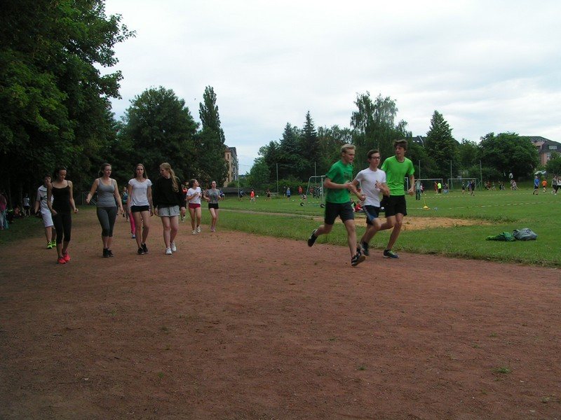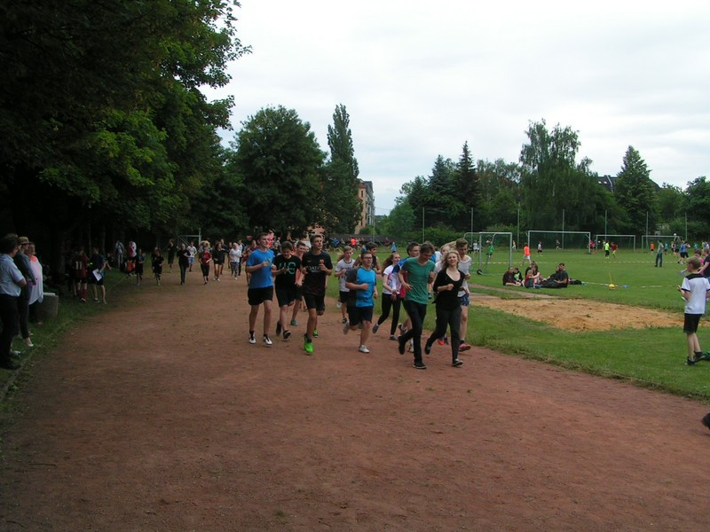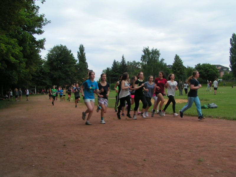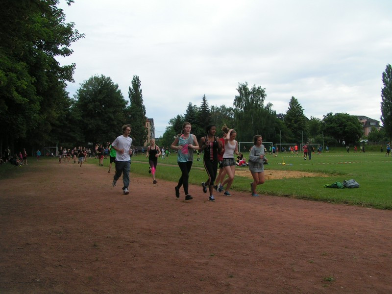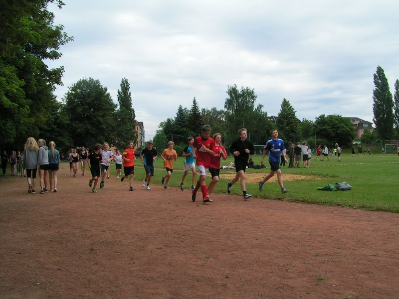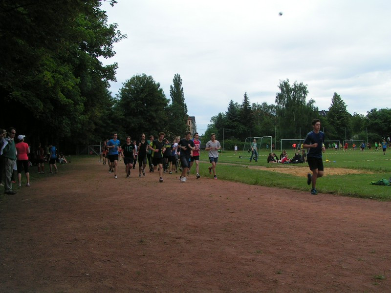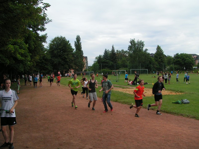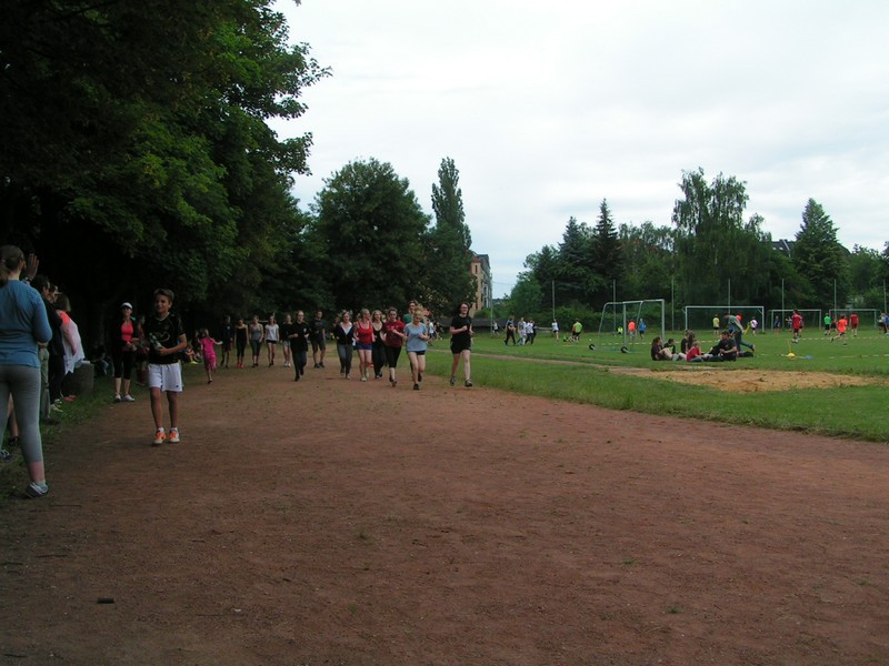 Pünktlich 17.30 Uhr: der Benefizlauf. Höhepunkte: die Sieger(innen)ehrung durch die Schulleitung persönlich (das muss man zur Kenntnis nehmen: eine Aufwertung des Tages) und das traditionell am Ende der Sportlichkeiten durchgeführte Fussballspiel: Lehrer gegen Schüler (in beiden Mannschaften nur männliche Teilnehmer, wenn ichs richtig gesehen habe); aber oh weh, oh weh, ihr Lehrer, wo seid ihr da geblieben - der Ausgang 7:2 für die Schülermannschaft (ja, Jonas und Marcel, wie versprochen: hier steht es!) ist doch etwas ..., wir werden eben älter!