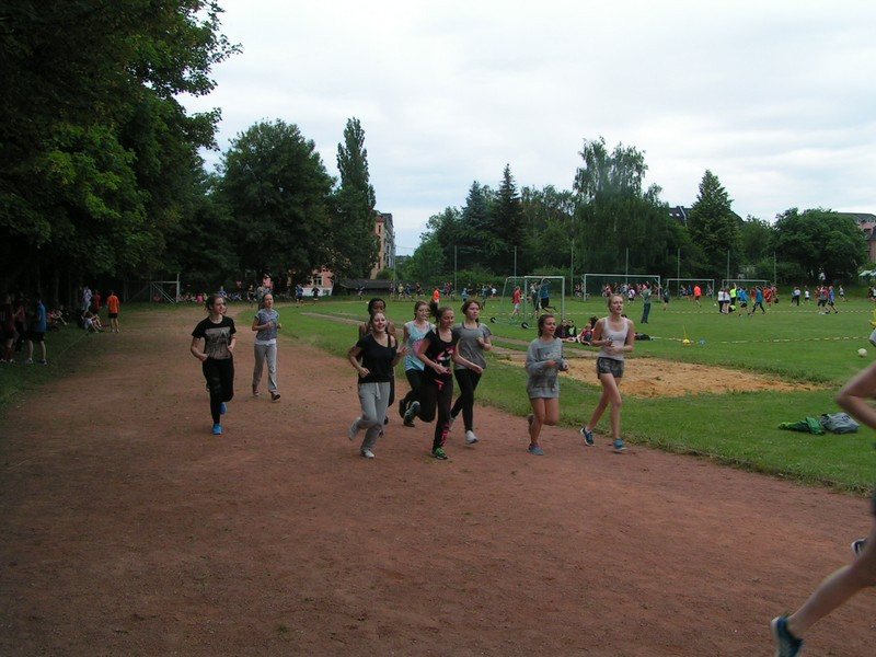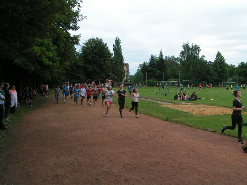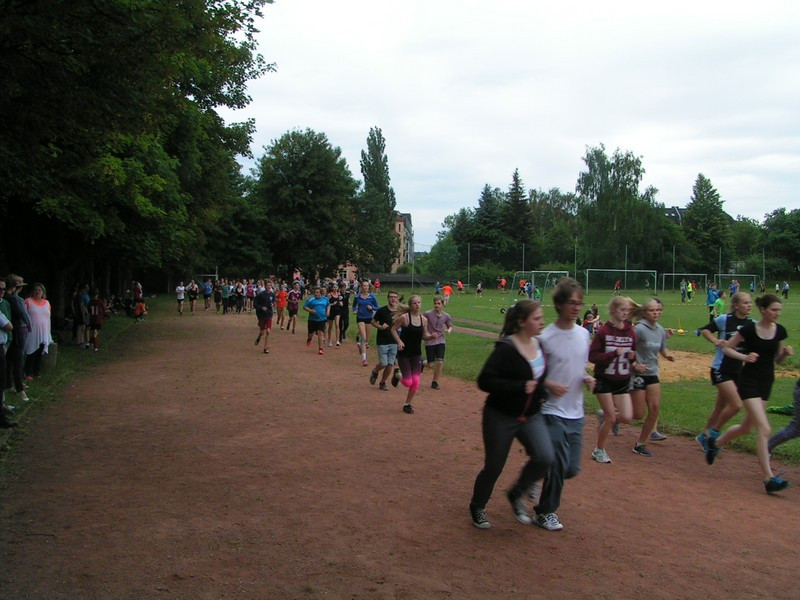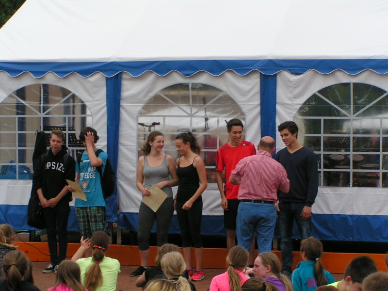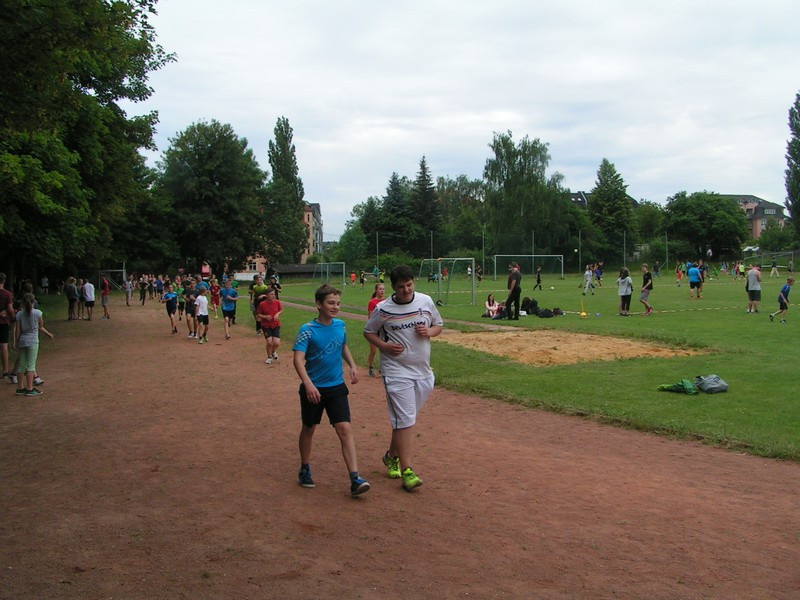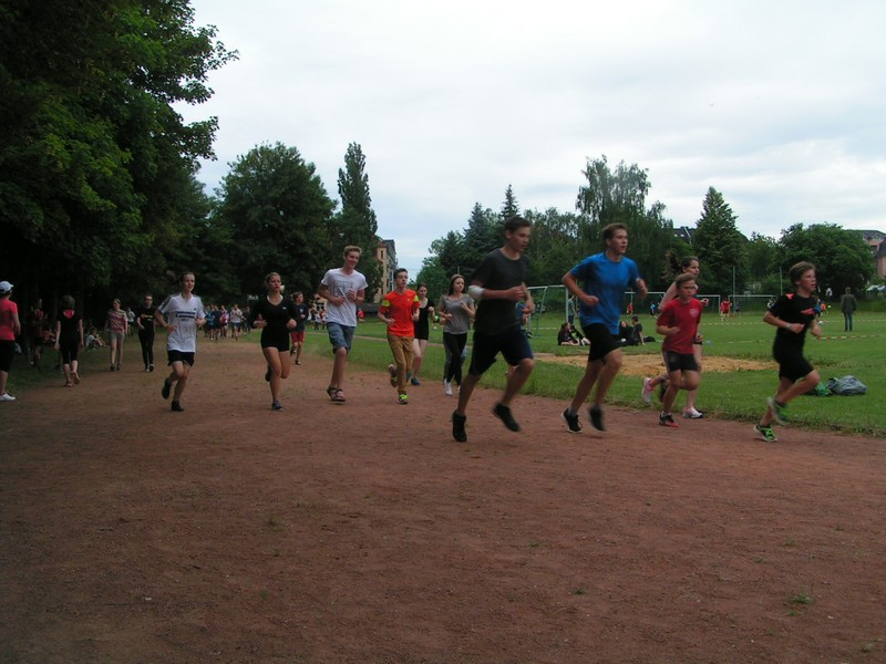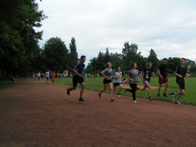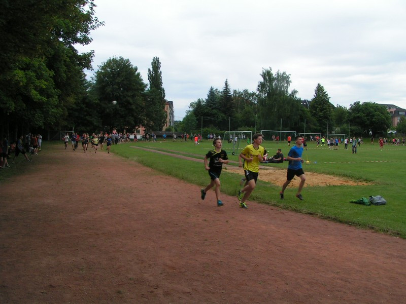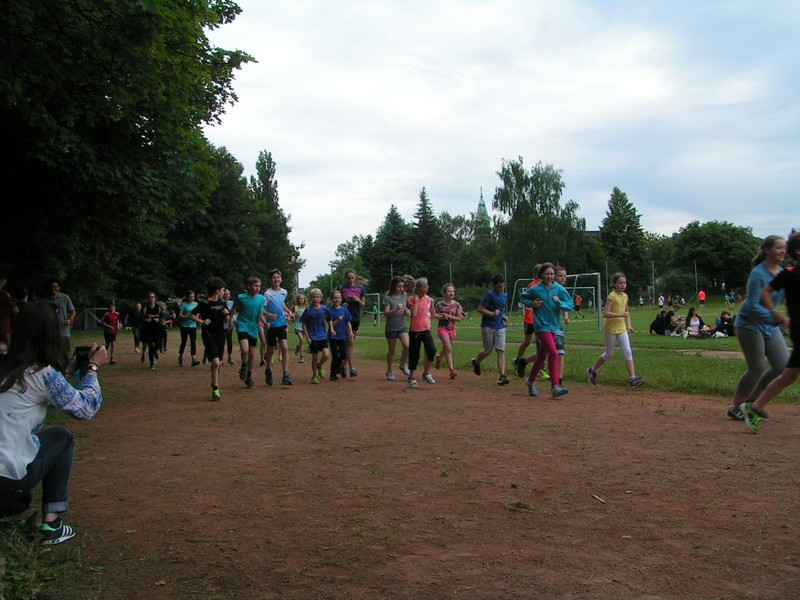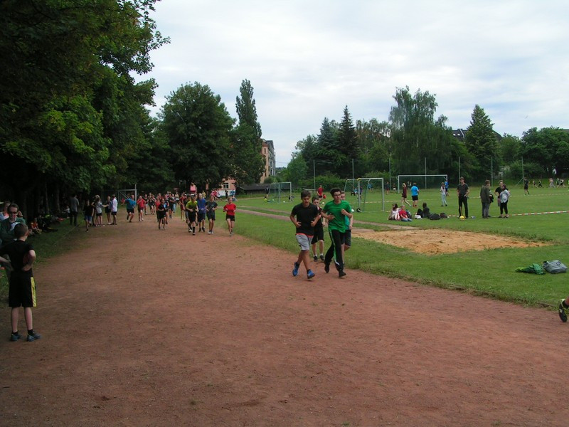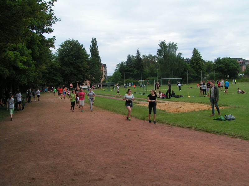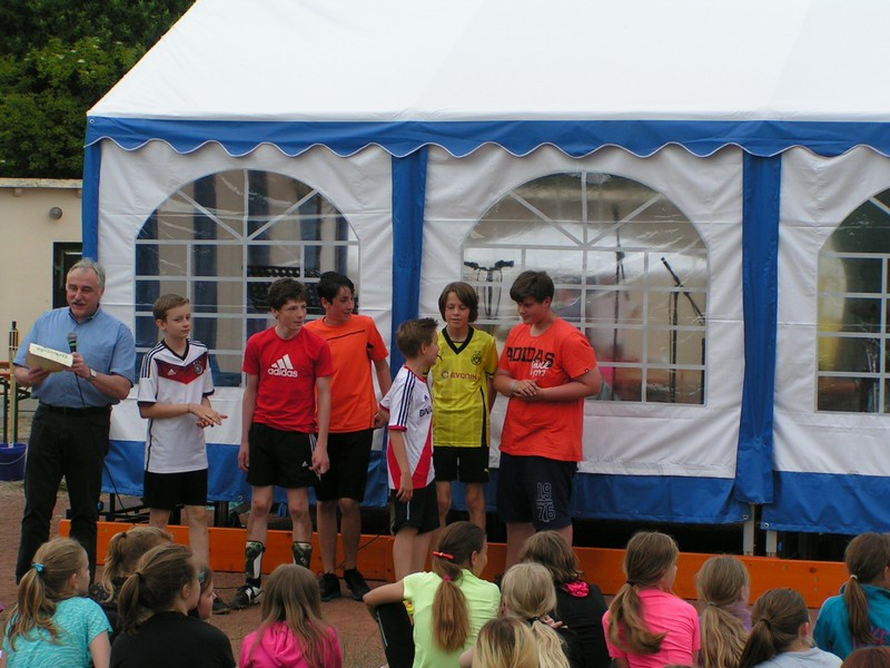 Pünktlich 17.30 Uhr: der Benefizlauf. Höhepunkte: die Sieger(innen)ehrung durch die Schulleitung persönlich (das muss man zur Kenntnis nehmen: eine Aufwertung des Tages) und das traditionell am Ende der Sportlichkeiten durchgeführte Fussballspiel: Lehrer gegen Schüler (in beiden Mannschaften nur männliche Teilnehmer, wenn ichs richtig gesehen habe); aber oh weh, oh weh, ihr Lehrer, wo seid ihr da geblieben - der Ausgang 7:2 für die Schülermannschaft (ja, Jonas und Marcel, wie versprochen: hier steht es!) ist doch etwas ..., wir werden eben älter!