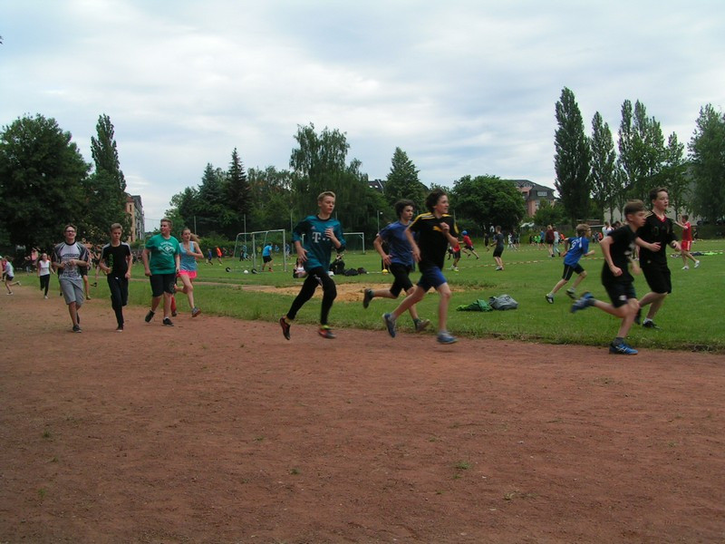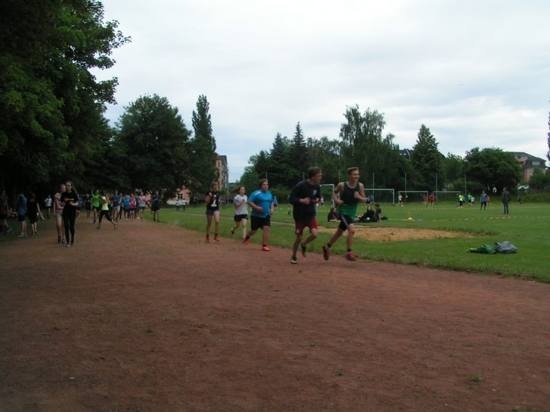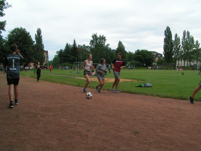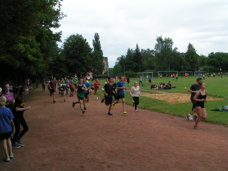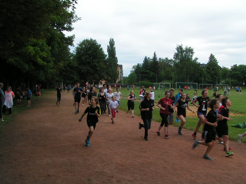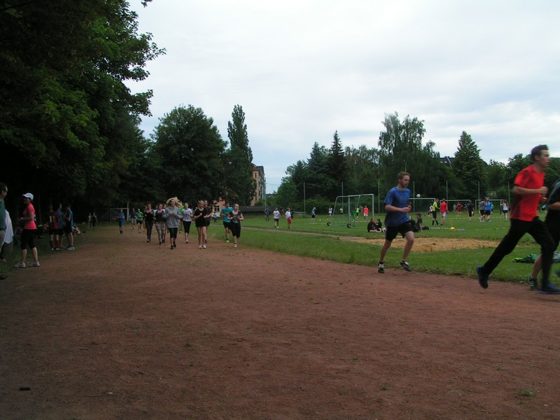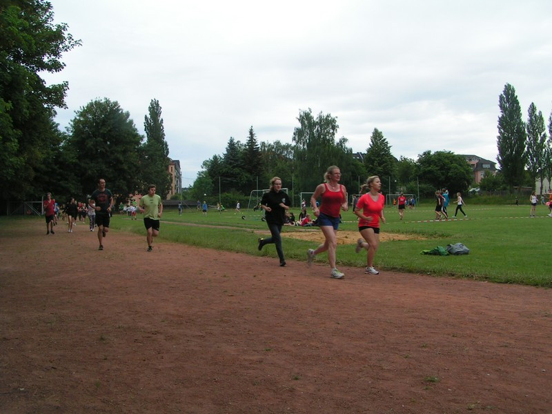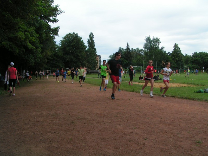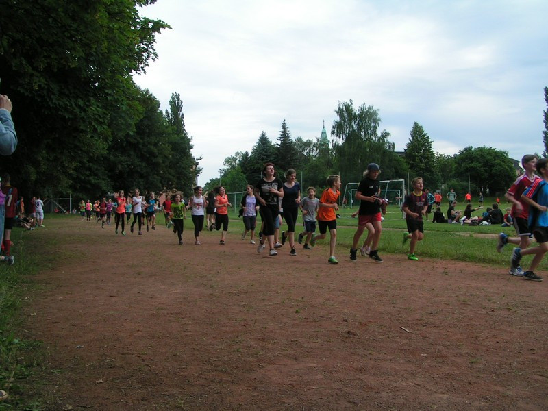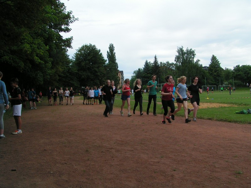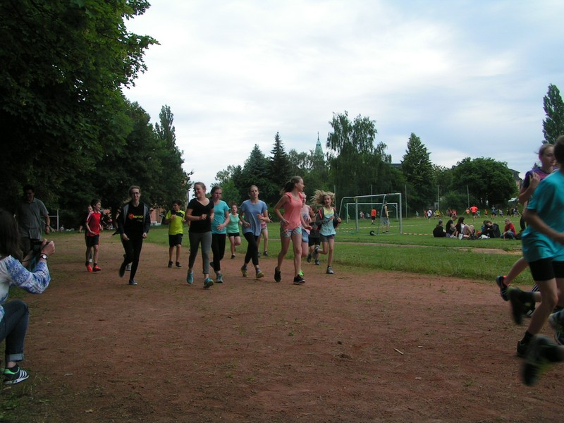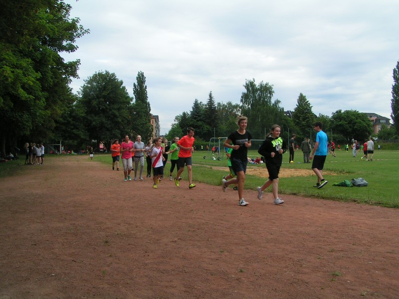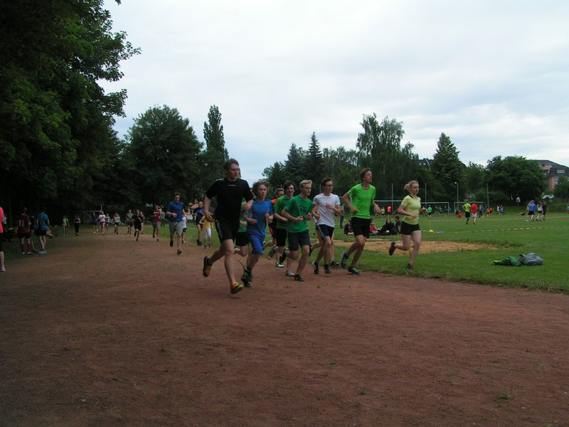 Pünktlich 17.30 Uhr: der Benefizlauf. Höhepunkte: die Sieger(innen)ehrung durch die Schulleitung persönlich (das muss man zur Kenntnis nehmen: eine Aufwertung des Tages) und das traditionell am Ende der Sportlichkeiten durchgeführte Fussballspiel: Lehrer gegen Schüler (in beiden Mannschaften nur männliche Teilnehmer, wenn ichs richtig gesehen habe); aber oh weh, oh weh, ihr Lehrer, wo seid ihr da geblieben - der Ausgang 7:2 für die Schülermannschaft (ja, Jonas und Marcel, wie versprochen: hier steht es!) ist doch etwas ..., wir werden eben älter!