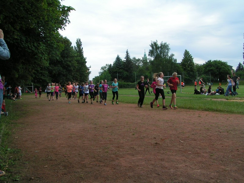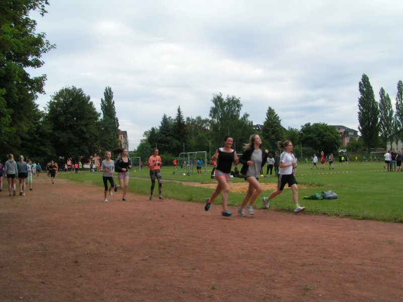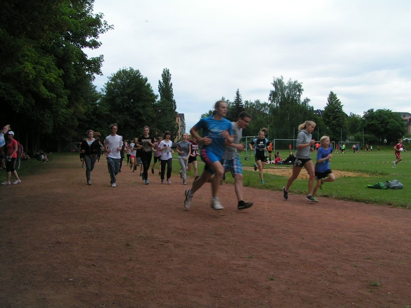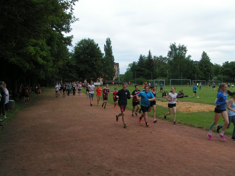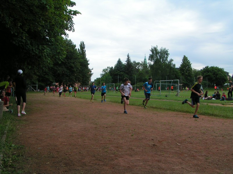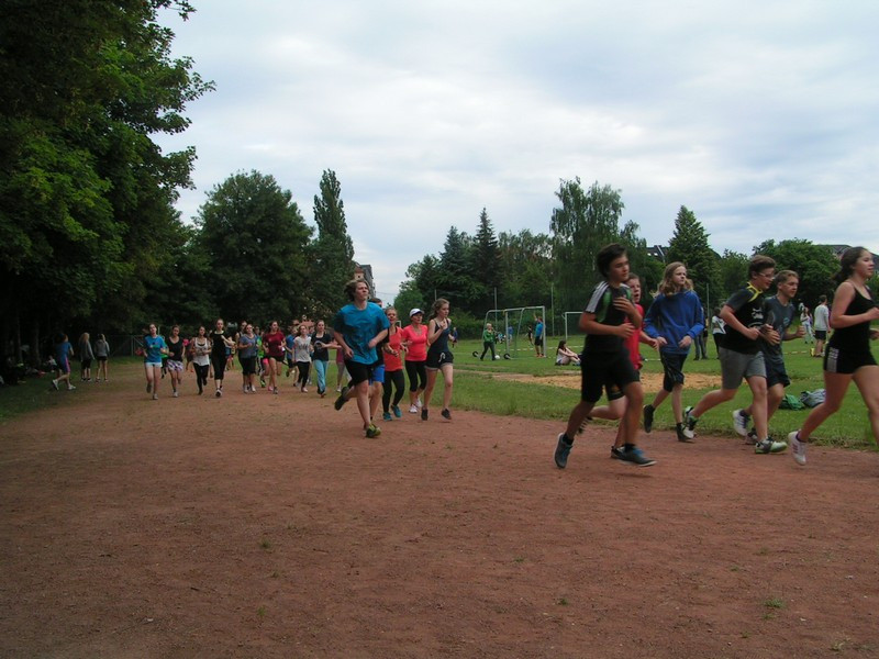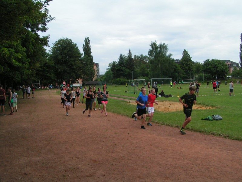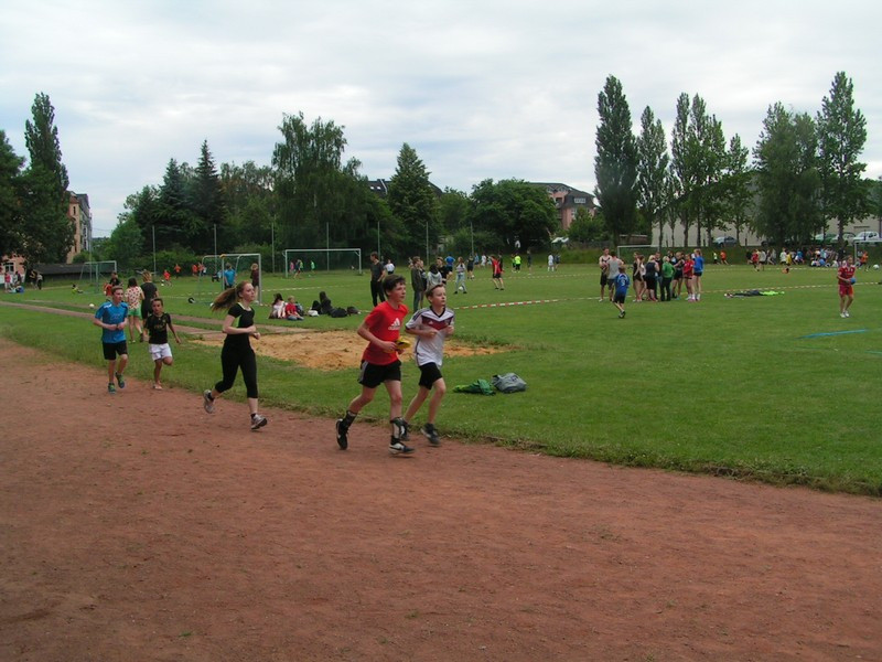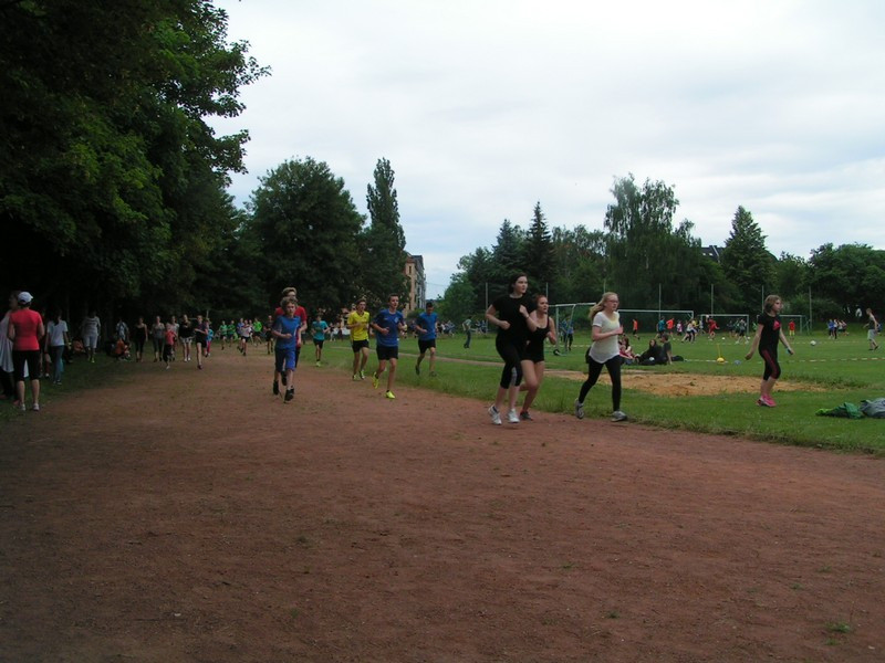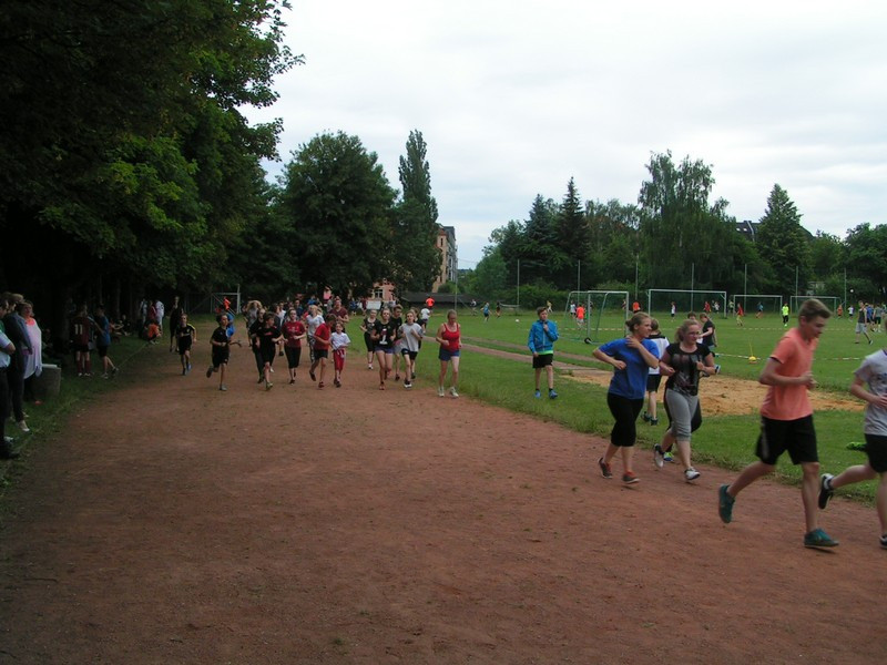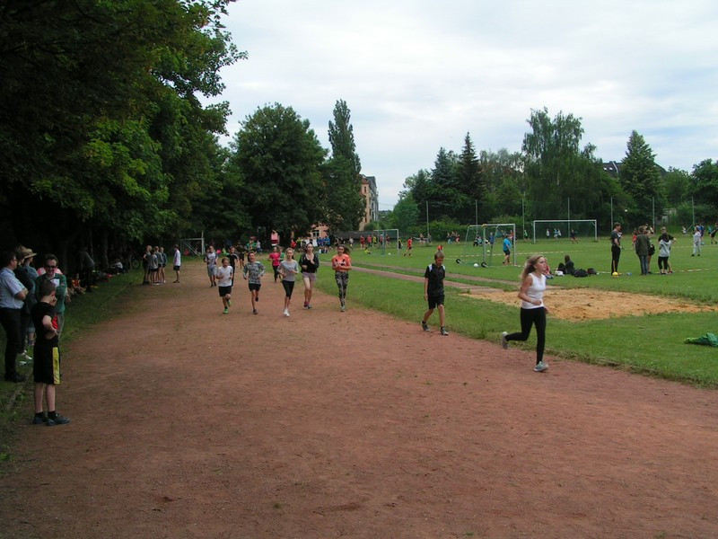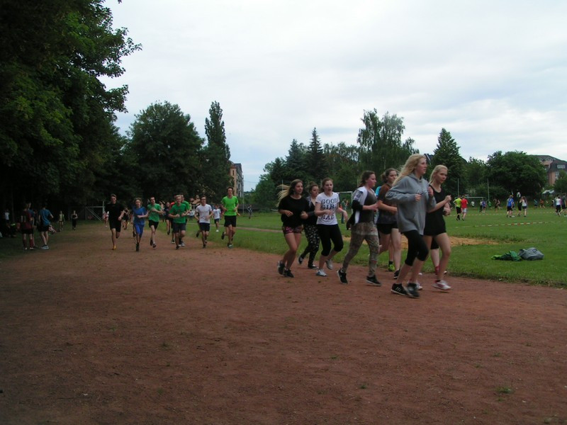 Pünktlich 17.30 Uhr: der Benefizlauf. Höhepunkte: die Sieger(innen)ehrung durch die Schulleitung persönlich (das muss man zur Kenntnis nehmen: eine Aufwertung des Tages) und das traditionell am Ende der Sportlichkeiten durchgeführte Fussballspiel: Lehrer gegen Schüler (in beiden Mannschaften nur männliche Teilnehmer, wenn ichs richtig gesehen habe); aber oh weh, oh weh, ihr Lehrer, wo seid ihr da geblieben - der Ausgang 7:2 für die Schülermannschaft (ja, Jonas und Marcel, wie versprochen: hier steht es!) ist doch etwas ..., wir werden eben älter!