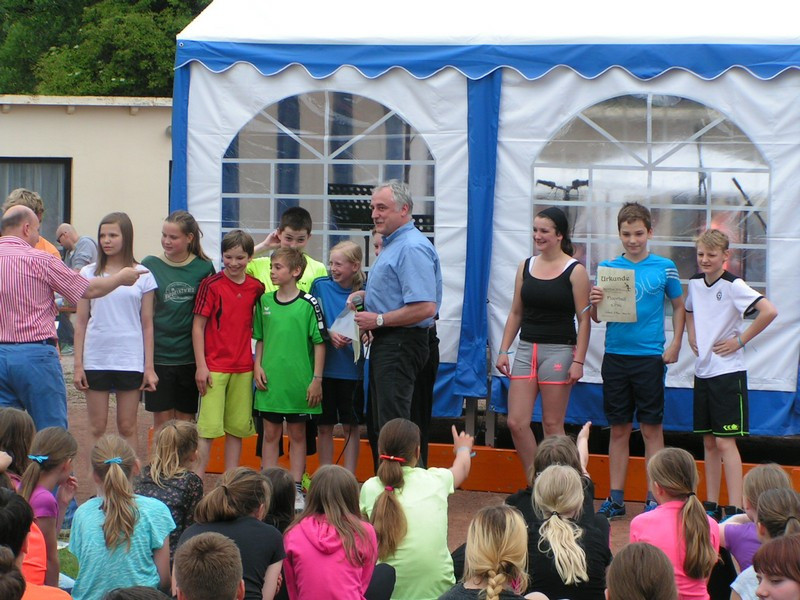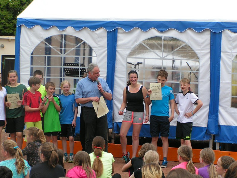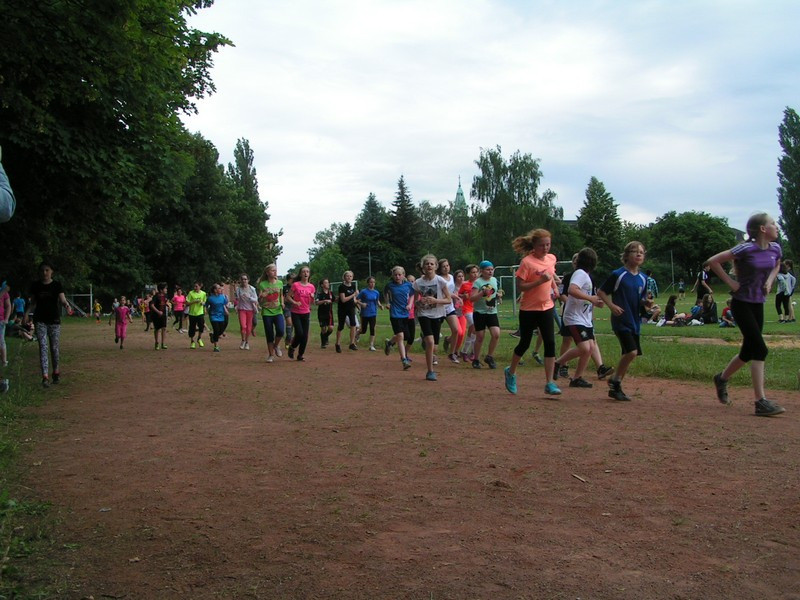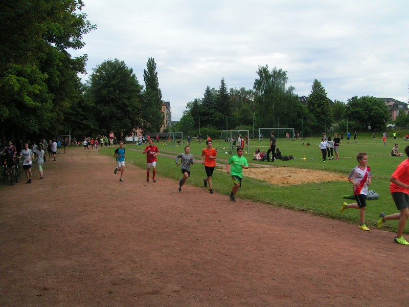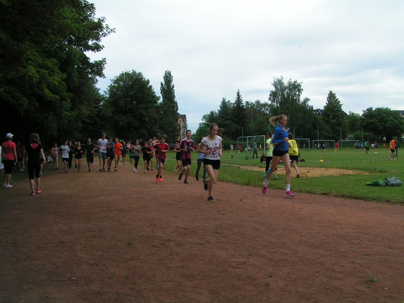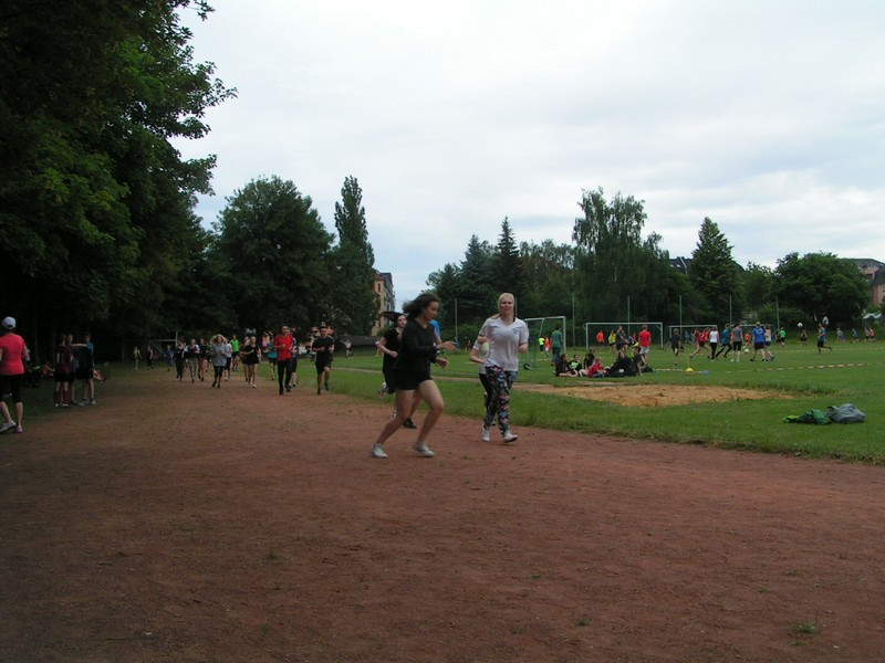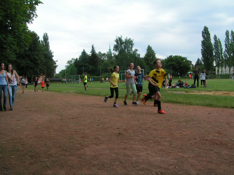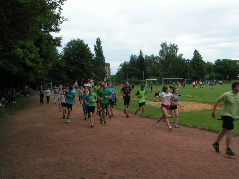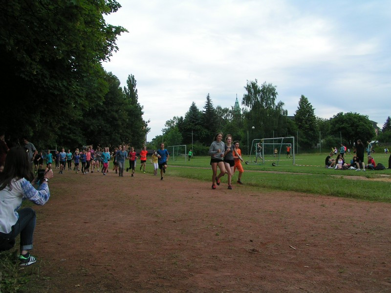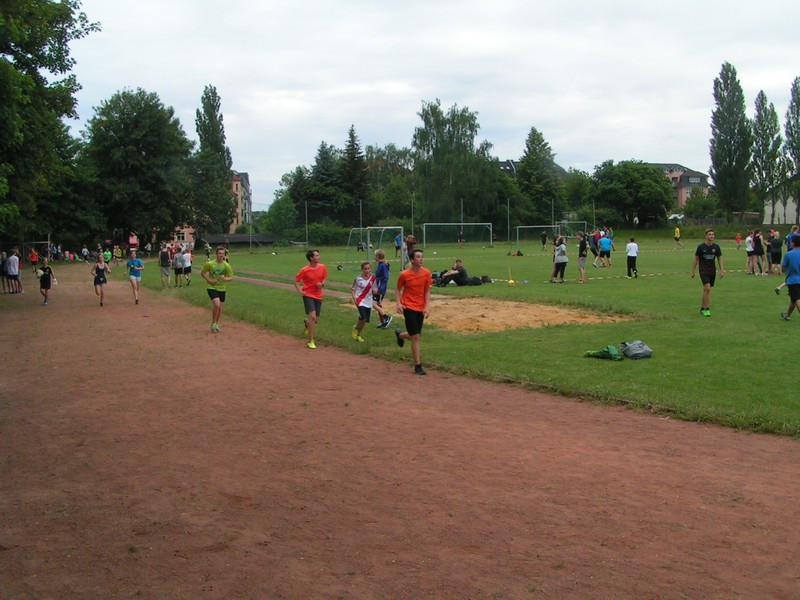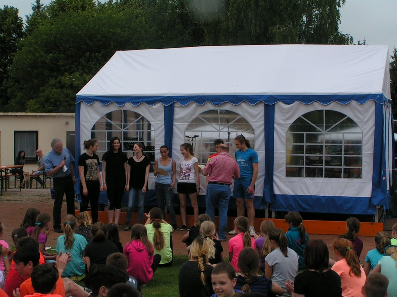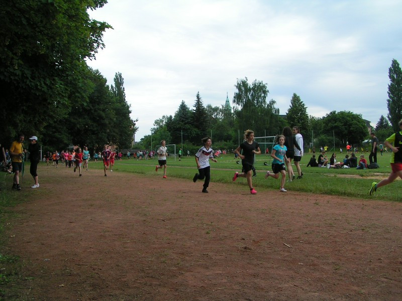 Pünktlich 17.30 Uhr: der Benefizlauf. Höhepunkte: die Sieger(innen)ehrung durch die Schulleitung persönlich (das muss man zur Kenntnis nehmen: eine Aufwertung des Tages) und das traditionell am Ende der Sportlichkeiten durchgeführte Fussballspiel: Lehrer gegen Schüler (in beiden Mannschaften nur männliche Teilnehmer, wenn ichs richtig gesehen habe); aber oh weh, oh weh, ihr Lehrer, wo seid ihr da geblieben - der Ausgang 7:2 für die Schülermannschaft (ja, Jonas und Marcel, wie versprochen: hier steht es!) ist doch etwas ..., wir werden eben älter!