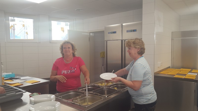 Zwei nette Damen verteilen nun jeden Tag den Gaumenschmaus des Essenanbieters "Tischlein deck dich" mit einem Lächeln und stellten sich auch für ein Foto zur Verfügung.