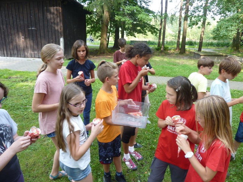 Am zweiten Tag lernten wir mehr über Karl May im Museum in seinem Geburtshaus in Ernstthal. Der Rückweg führte uns schon mal am Sachsenring vorbei, der schon von Weitem zu hören war. Und so konnten wir durch den Zaun schon mal den Motorradfahrern zuwinken- drei wunken uns sogar zurück!!! Und dann wurde es schwer, weil noch 40 Minuten Fußweg vor uns lagen. Aber zum Glück wurde es im Wald kühler. Den Nachmittagsschlaf haben glaube ich alle gebraucht. Zum Grillen kam am Abend sogar Herr Stahl mit seinem Motorrad vorbei. Nach einigen Wahlrunden rund ums Lagerfeuer stand dann auch fest: Mavie und Luise sind unsere Klassensprecherinnen.