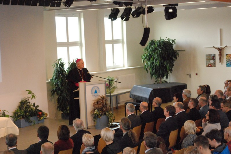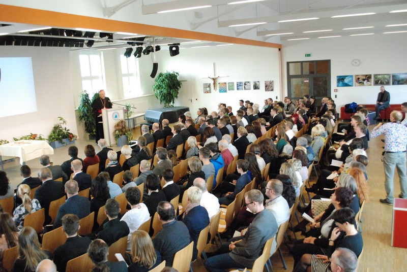 Dem Festakt wohnten Bischof Timmerevers, zahlreiche offizielle Vertreter der Stadt Zwickau wie Frau Oberbürgermeisterin Pia Findeiß, die Stadtratsfraktion der CDU und der CDU- Bundestagsabgeordnete Carsten Körber sowie weitere kirchlicheVertreter, Vertreter der Bildungsagentur und der verschiedenen Baugewerke teil. Darüber hinaus waren der Einladung auch zahlreiche Eltern- und Schülervertreter sowie das Kollegium des Gymnasiums gefolgt.
