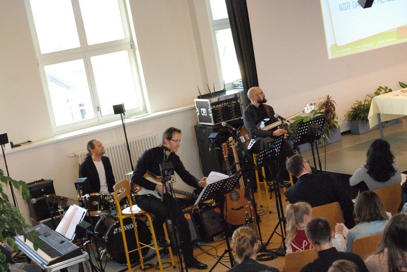 Musikalisch stilvoll umrahmt wurde die Veranstaltung von der Schülerband ( Malcolm McCall, Maurice Möschwitzer, Maurice Roth und Simon Müller) mit den Solisten Liska Türpe, Jakob Springfeld und Leonie Pretzlaff und der Band des Lehrerkollegiums.