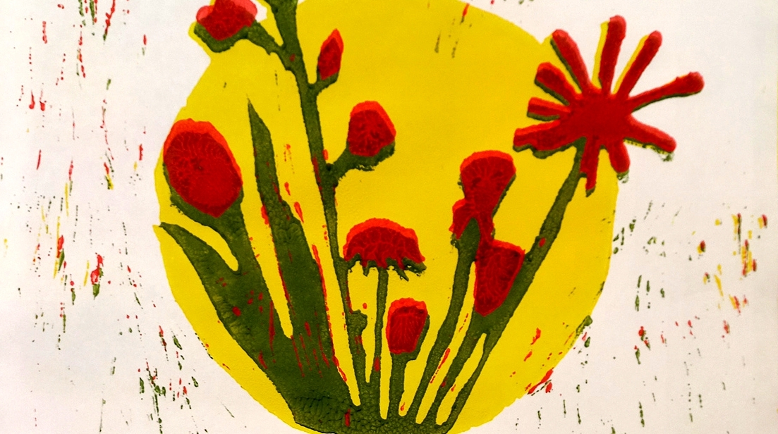 Eine kleine, neue Ausstellung im Foyer unseres Gymnasiums zeigt Arbeiten des Kunst-Profils der Klassenstufe 8. Es handelt sich dabei um Farblinolschnitte, die nach dem Prinzip der „verlorenen Form“ entstanden sind.