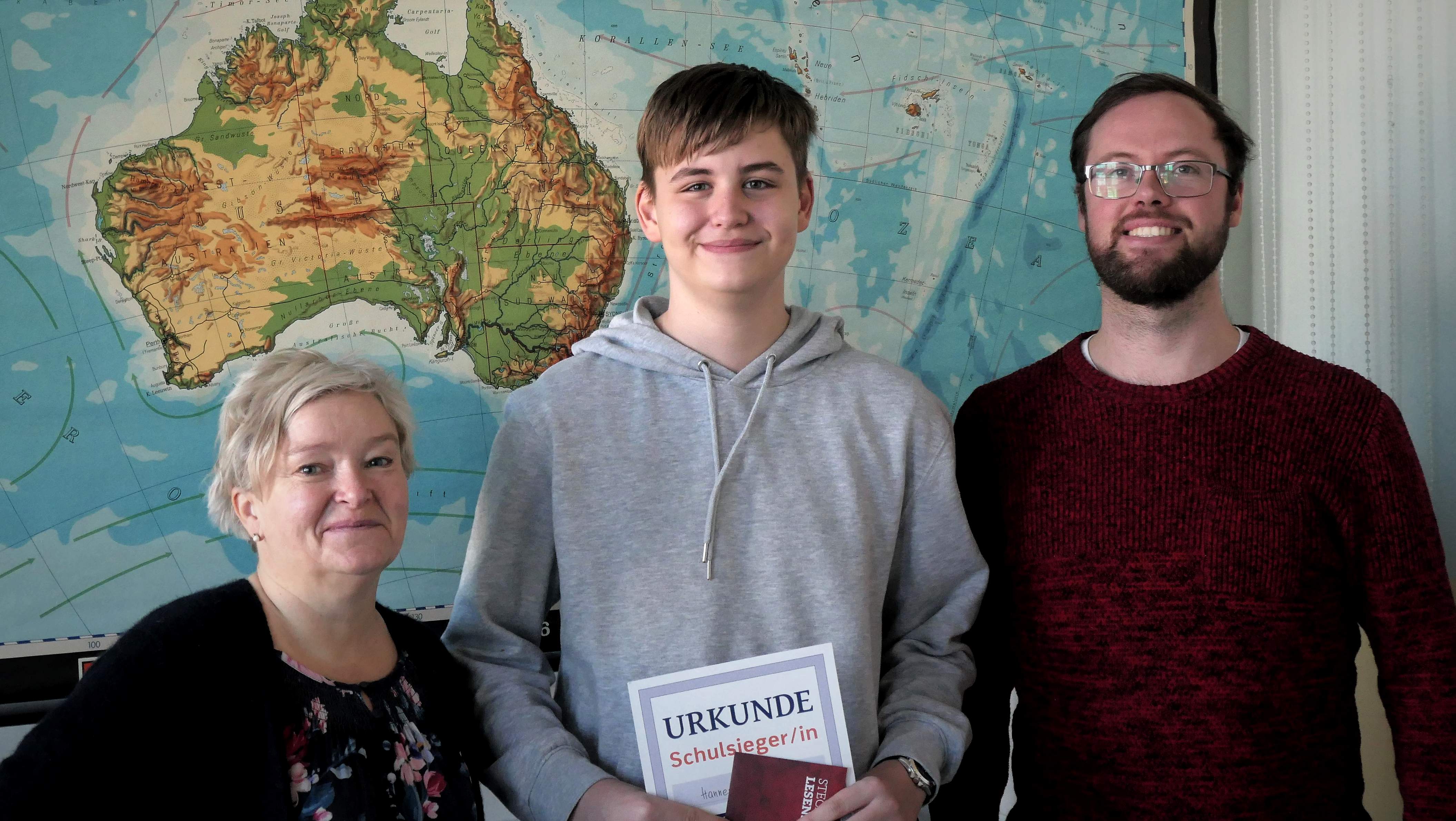 Hannes Ruldolph aus der Klasse 8b ist Schulsieger am Peter-Breuer-Gymnasium beim Diercke WISSEN Geographie-Wettbewerb 2023.