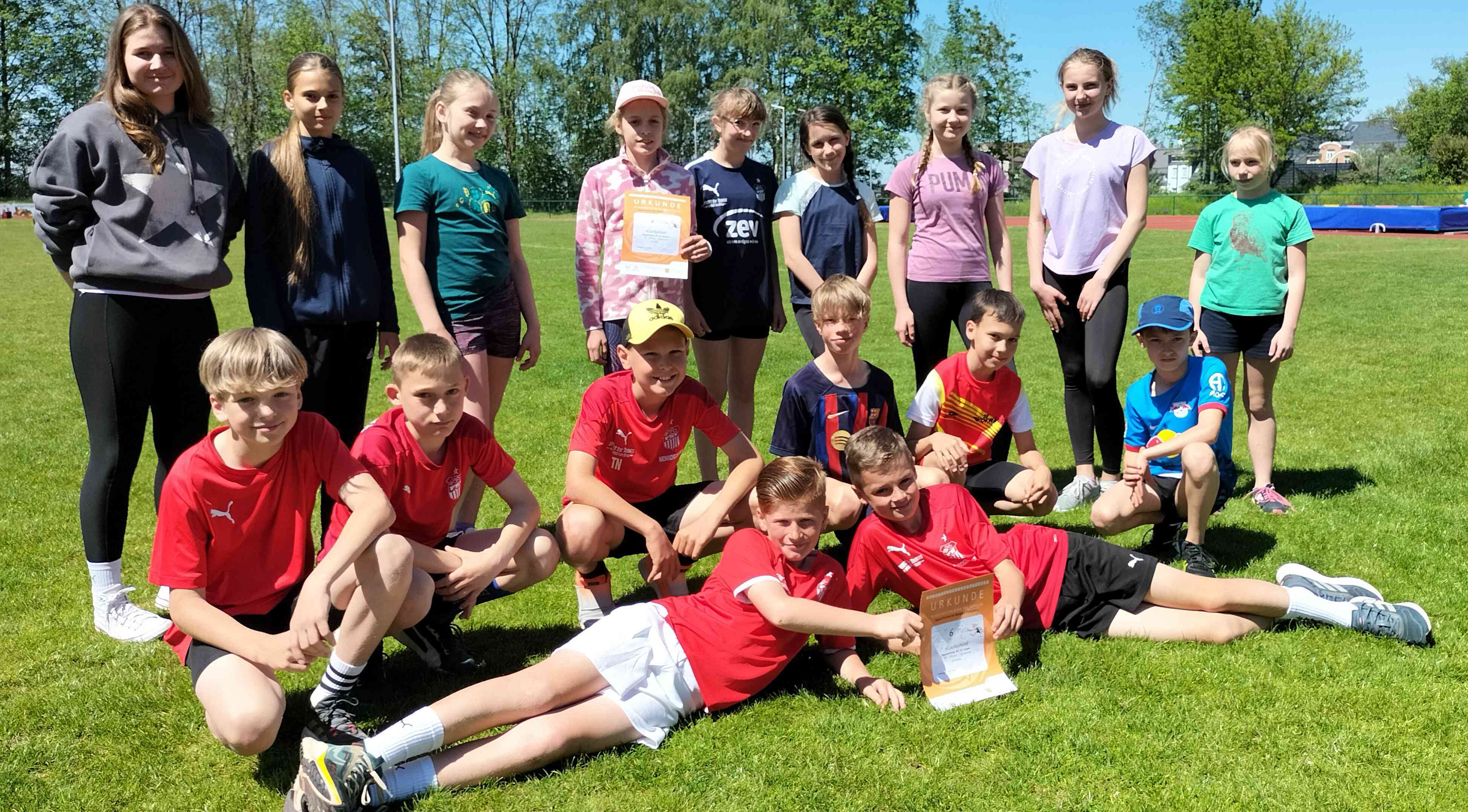 Auch in diesem Schuljahr haben wir es geschafft mit zwei Teams der Wk IV am Regionalfinale in der Leichtathletik teilzunehmen. Beide Teams belegten am 15. Mai 2024 in Falkenstein einen sehr guten 6. Platz. Bei den Mädchen gewann das Gymnasium Markneukirchen, bei den Jungen das Sandberg-Gymnasium Wilkau-Haßlau.