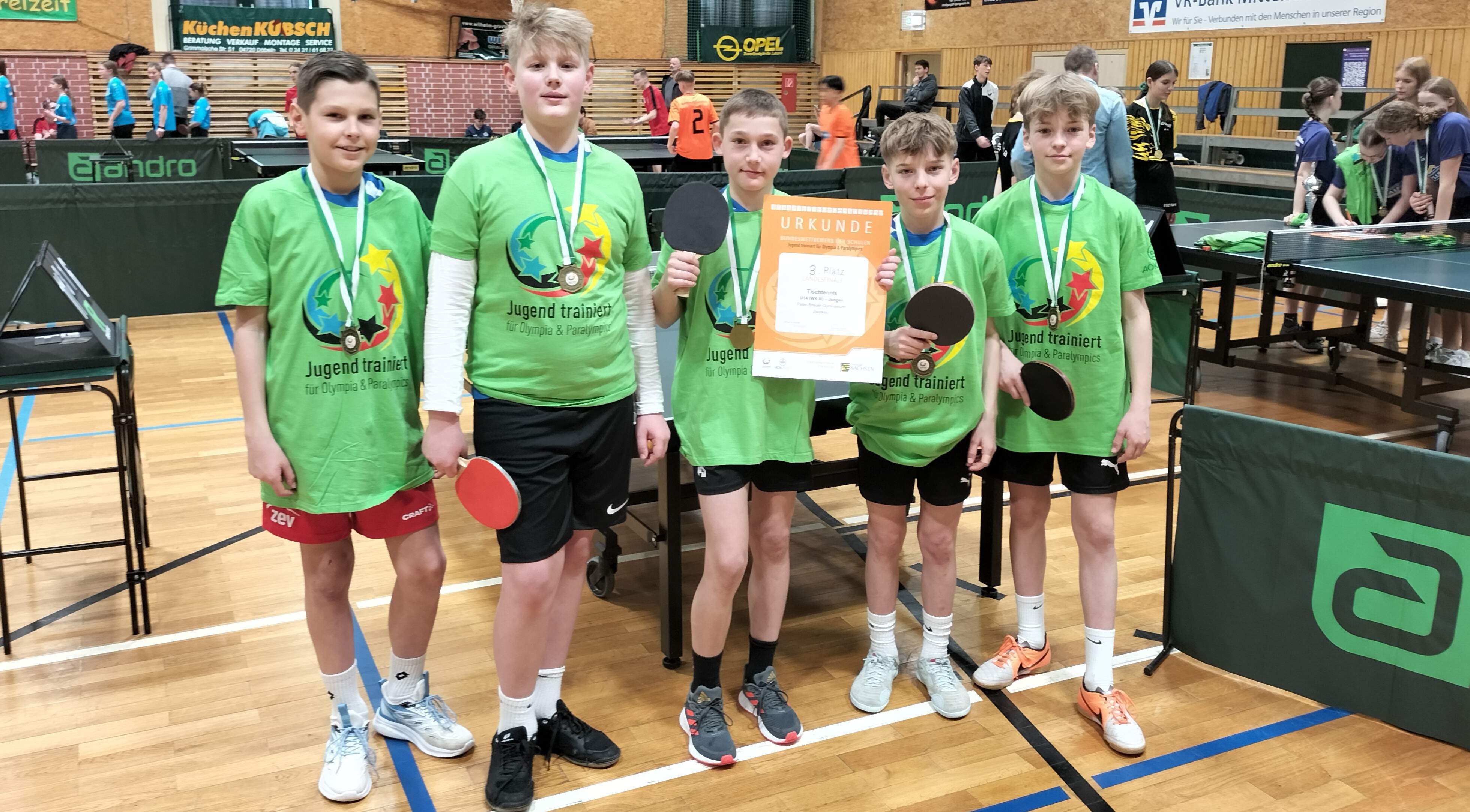 Mit der Bronzemedaille kehrten die Jungen der U14 vom Landesfinale Tischtennis am 21. März 2025 aus Döbeln zurück. Herzlichen Glückwunsch dazu!
