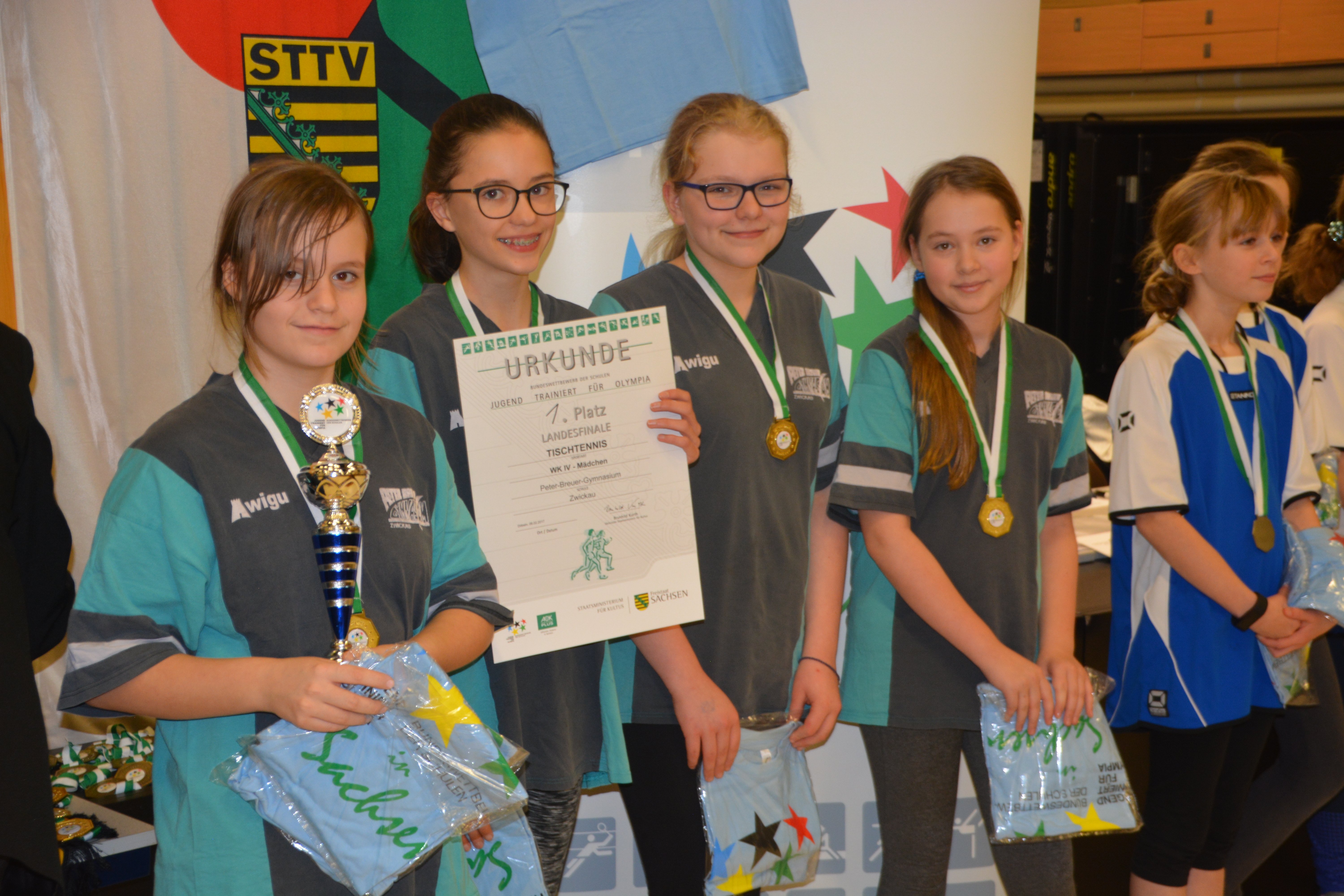 Am vergangenen Montag fand in Döbeln das Landesfinale im Tischtennis statt. Wir kehrten als Landesmeister in der Wettkampfklasse IV zurück!!! Mariell Reinhold, Lena Elsner, Lucienne Grünert und Caroline Drechsel gelang der Überraschungscoup.