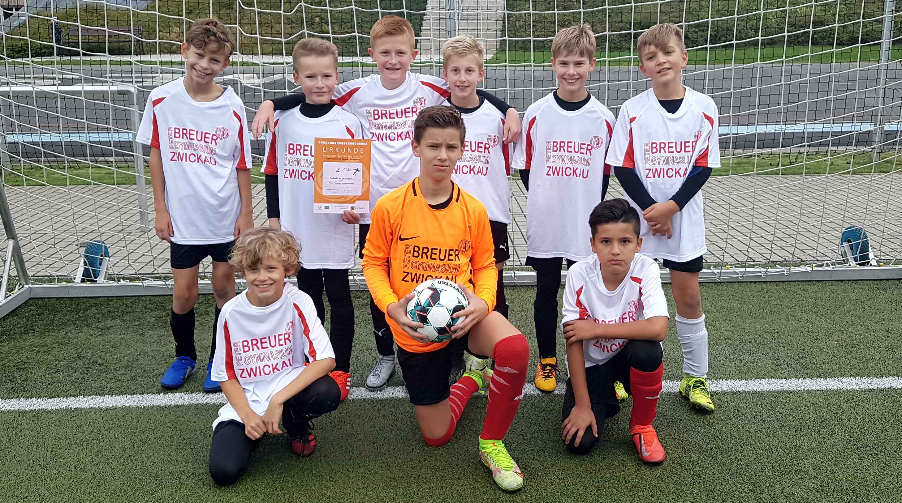 Die Jungs der Jahrgänge 2003-2005 belegten nach einem verlorenen und zwei gewonnenen Spielen den zweiten Platz hinter dem Käthe-Kollwitz- Gymnasium. Die Spiele fanden auf dem angenehm schattig gelegenen Bielsportplatz statt.