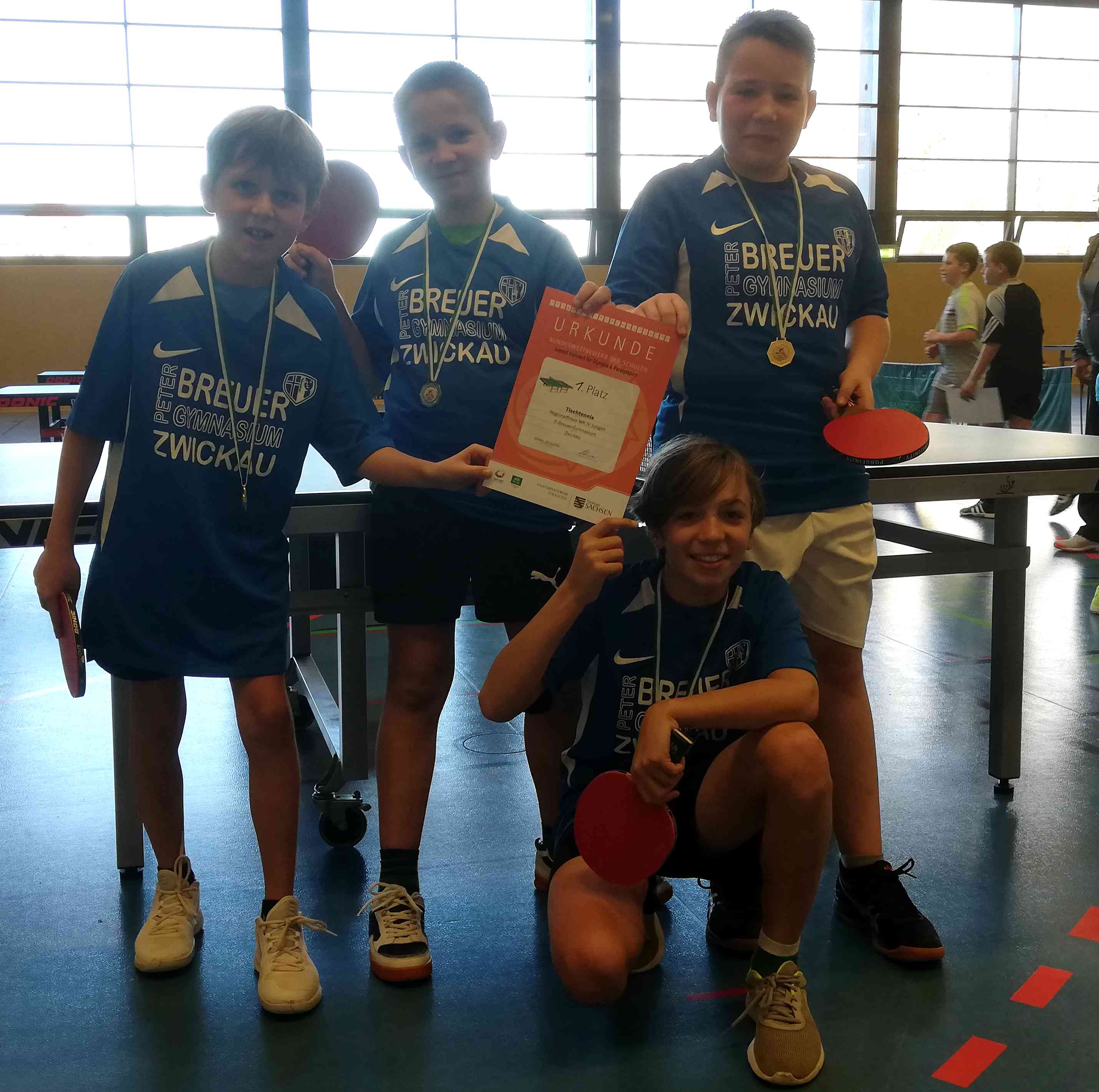 Am 09.11.21 fand im Käthe-Kollwitz-Gymnasium Zwickau das Regionalfinale im Tischtennis statt. Die Jungen der Wk IV gewannen ihre Spiele gegen das Goethe-Gymnasium Reichenbach und gegen das KKG und stehen im März kommenden Jahres im Landesfinale.