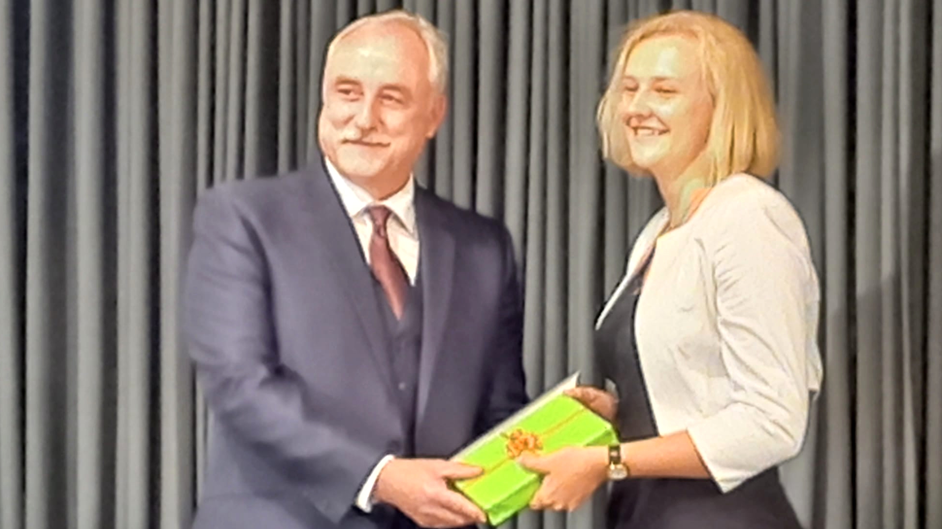 Seit drei Jahren verleiht Bischof Timmerevers an jeder der Schulen in Trägerschaft des Bistums zum Ende des Schuljahres auf Vorschlag der jeweiligen Schule einem Absolventen der Einrichtung den „Preis des Bischofs“. Im Rahmen des feierlichen Abiturfestakts am 01. Juli 2022 in der Schulaula des Peter-Breuer-Gymnasiums erhielt Hannah Sämann aus den Händen des Leiters der Einrichtung, Michael Olbrich, den Preis des Bischofs, bestehend aus einem Buchpräsent und einer Urkunde.