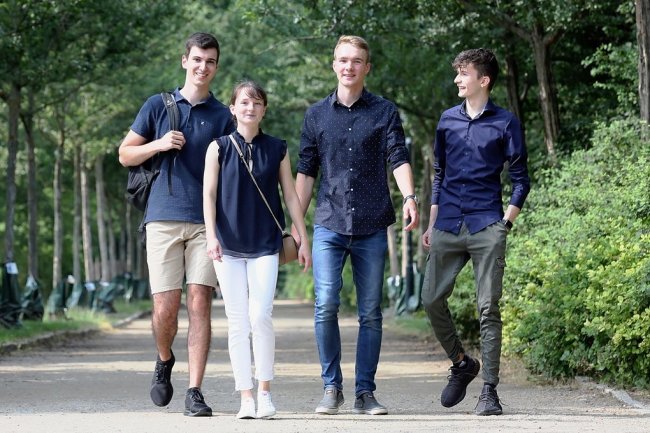 Der Zwickauer Johannes Schwarzer, die Schönfelserin Lucie Edel, der Neumarker Janus Schaarschmidt und der Zwickauer Marius Reinhold (v. l.) haben ihr Abitur mit Bravour bestanden. Nun trennen sich ihre Wege. Foto: Ralph Köhler