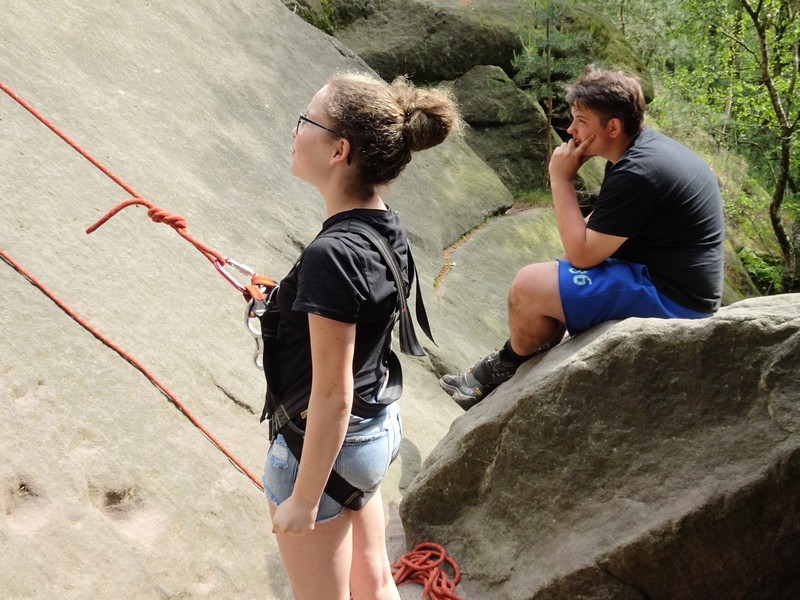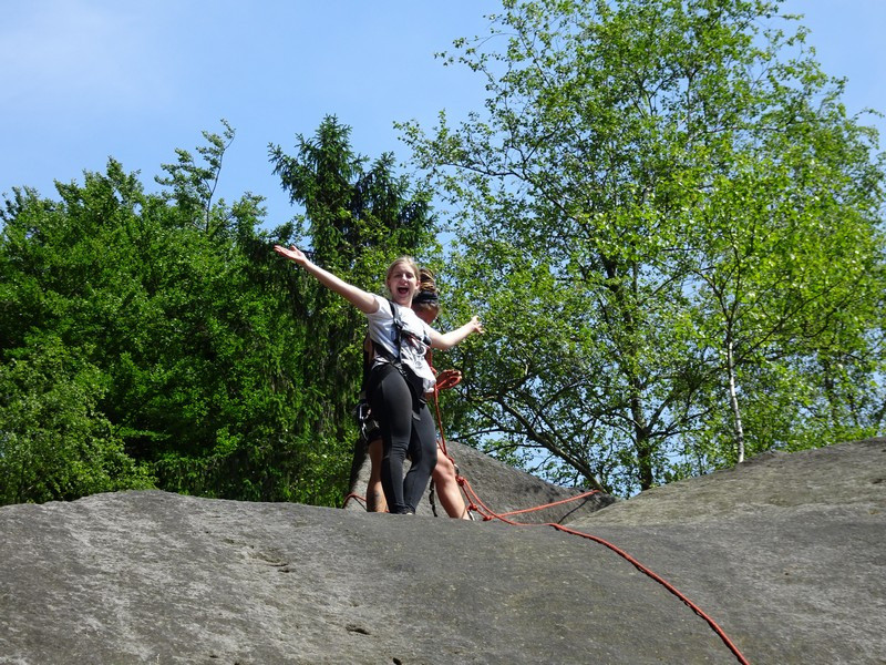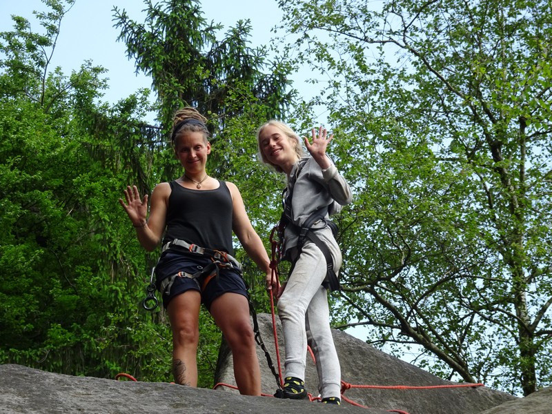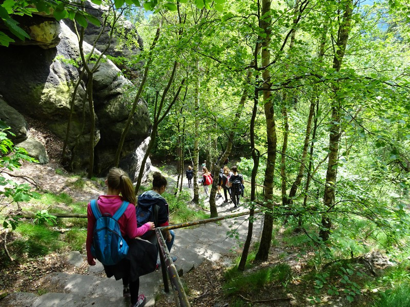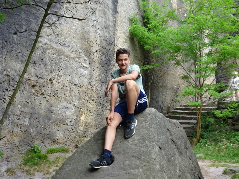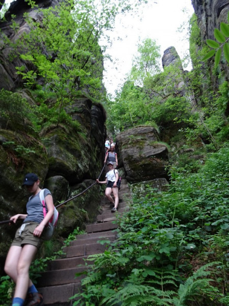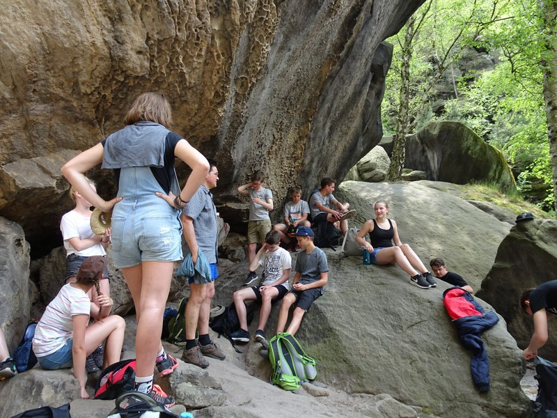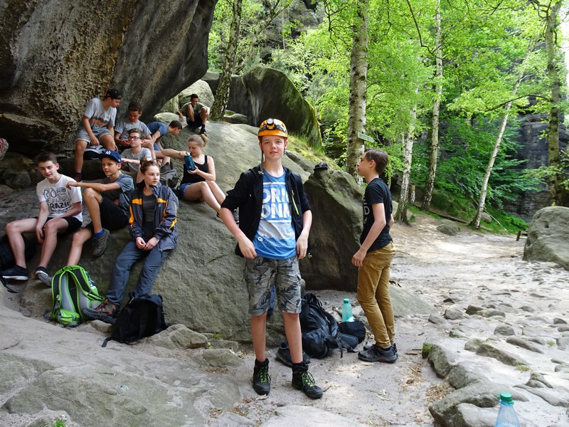Der zweite Tag startete mit einem guten selbstgemachten Frühstück und auch dieser sollte wieder anstrengend werden. Bei 30?C und schwüler Hitze wanderten wir steil bergauf zum Pfaffenstein. Dort machten wir eine Höhlenwanderung, die einen echt herausforderte. Außerdem konnten wir an einem steilen Fels klettern. Nach einer Mittagspause begannen wir den Heimweg, der nicht weniger anstrengend war als der Hinweg.