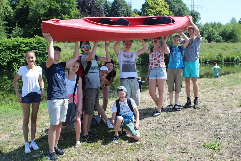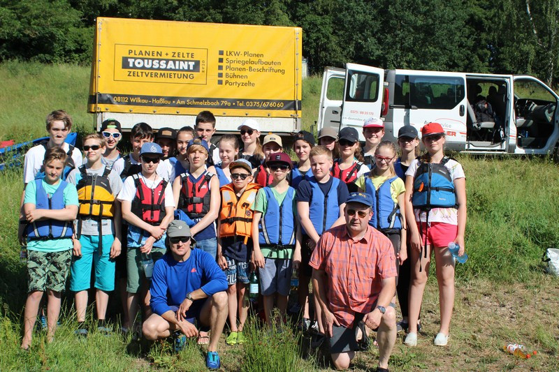 Am 21.06.2017 starteten wir 8.00 Uhr an der Schule und um dem Namen Wandertag auch gerecht zu werden, wanderten wir zunächst nach Schedewitz. Von dort aus begann unsere Paddeltour auf der Mulde. Nachdem alle ihre Schwimmwesten angelegt und eine kurze Einweisung erhalten hatten, ging es auch schon los. Immer zu zweit in einem Paddelboot, u.a. unsere Lehrer Herr Muck und Herr Hornung gemeinsam in einem Boot, legten wir ab und gaben unser Bestes.