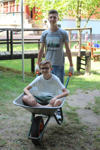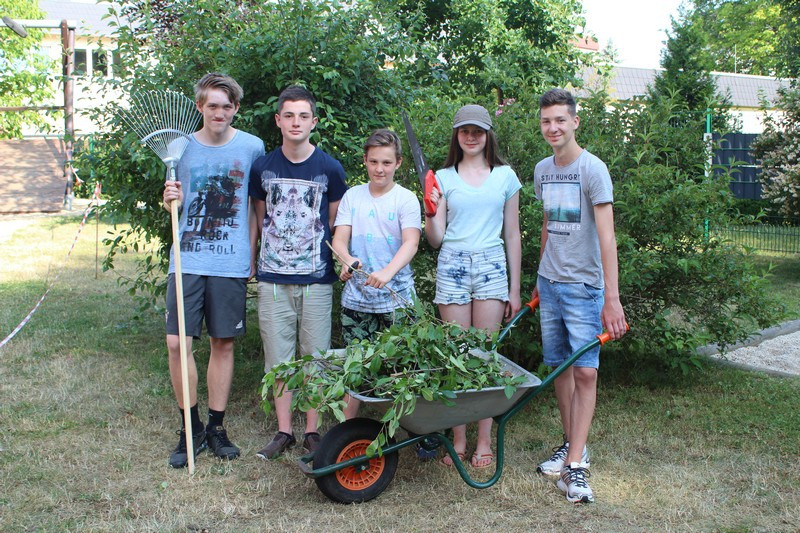 Am 22.06.2017 besuchten wir eine Kindertagesstätte. Mit dem Zug ging es 8.00 Uhr vom Zwickauer Bahnhof nach Crimmitschau. Unsere Mitschüler aus Crimmitschau führten uns in die Einrichtung. Dort wurden wir in verschiedene Gruppen mit unterschiedlichen Aufgaben eingeteilt. So durften sich einige um die Gartenarbeit kümmern und andere waren mit der Betreuung der Kin-der beauftragt. Bei sonnigem Wetter konnten sich Groß und Klein gemeinsam im Garten austoben. Es wurde Verstecken gespielt, im Sandkasten gebuddelt, sich im Topfschlagen geübt oder auch gemütlich auf einer Bank gemalt.