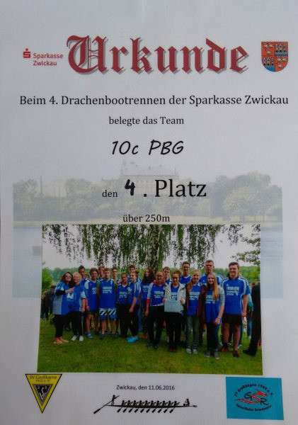 Kurz gesagt, die "10c PBG" nahm am 4. Drachenbootrennen der Sparkasse Zwickau teil.