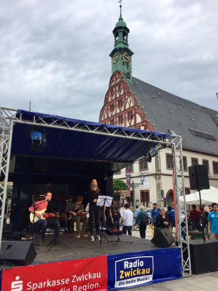 dachten wir uns und zögerten nicht, als wir gefragt wurden, ob wir als Schulband des PBG einen musikalischen Beitrag zum Interkulturellen Fest am 1. Oktober auf dem Zwickauer Hauptmarkt leisten würden.