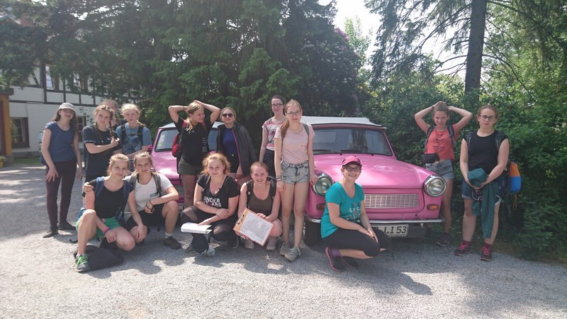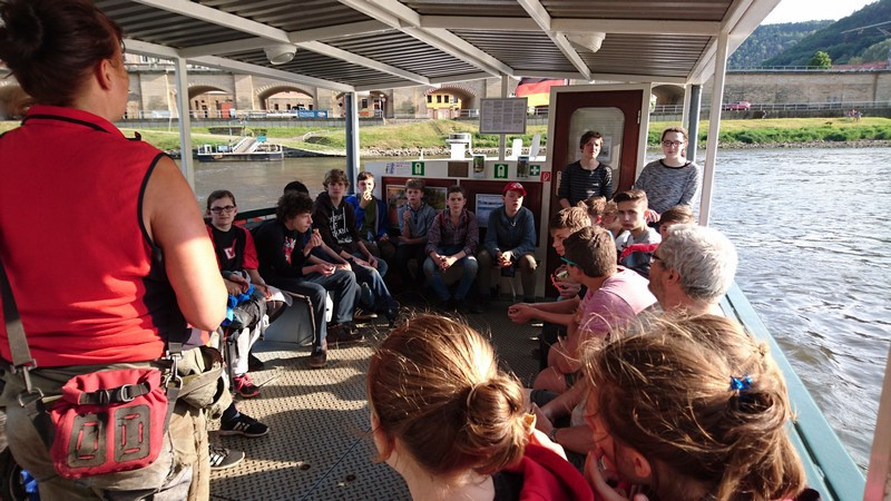 Unsere Erlebnisfahrt begann eines schönen Maienmorgens. Zunächst saßen wir gute zwei Stunden zusammen mit unserer Parallelklasse 8a im Bus, der Richtung Elbsandsteingebirge tuckerte.